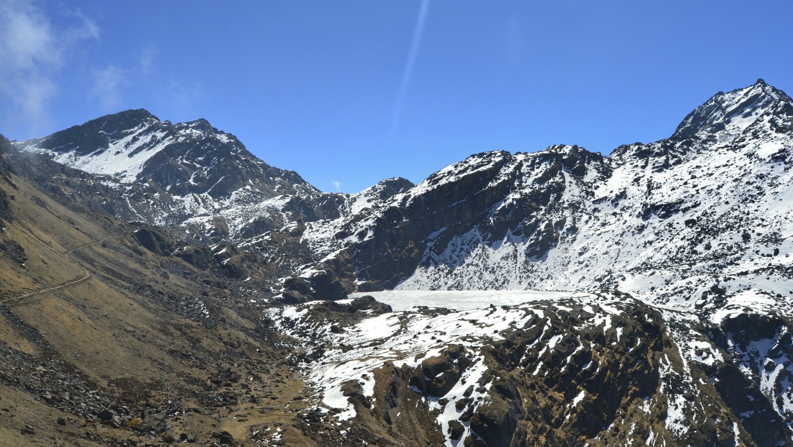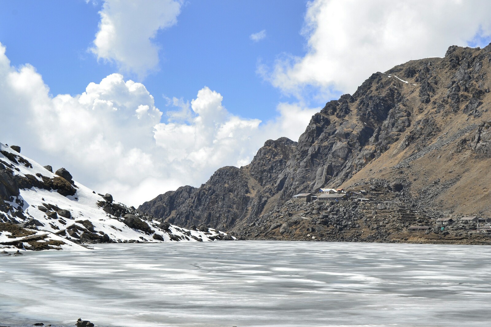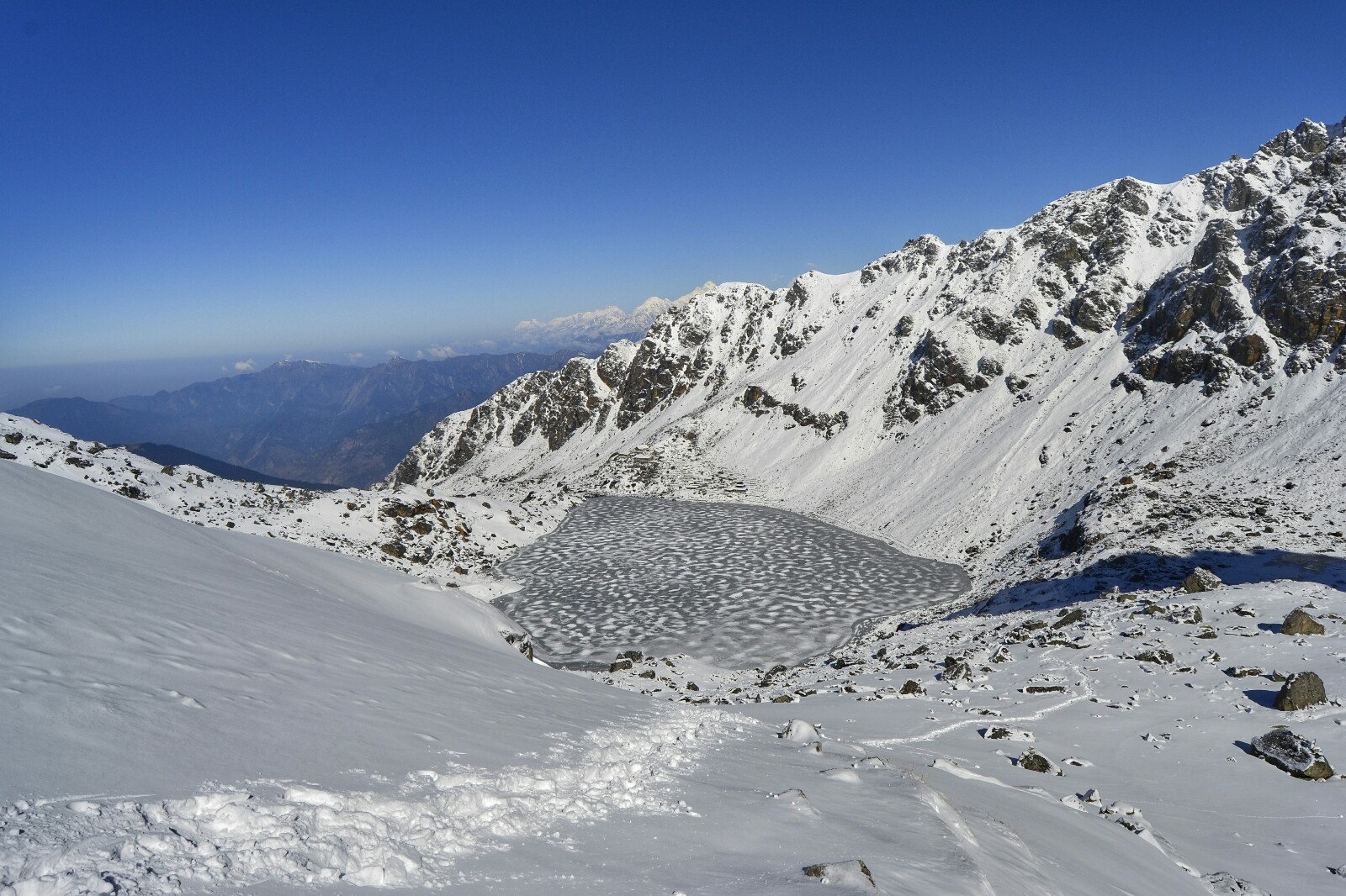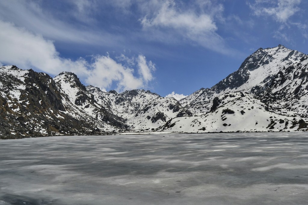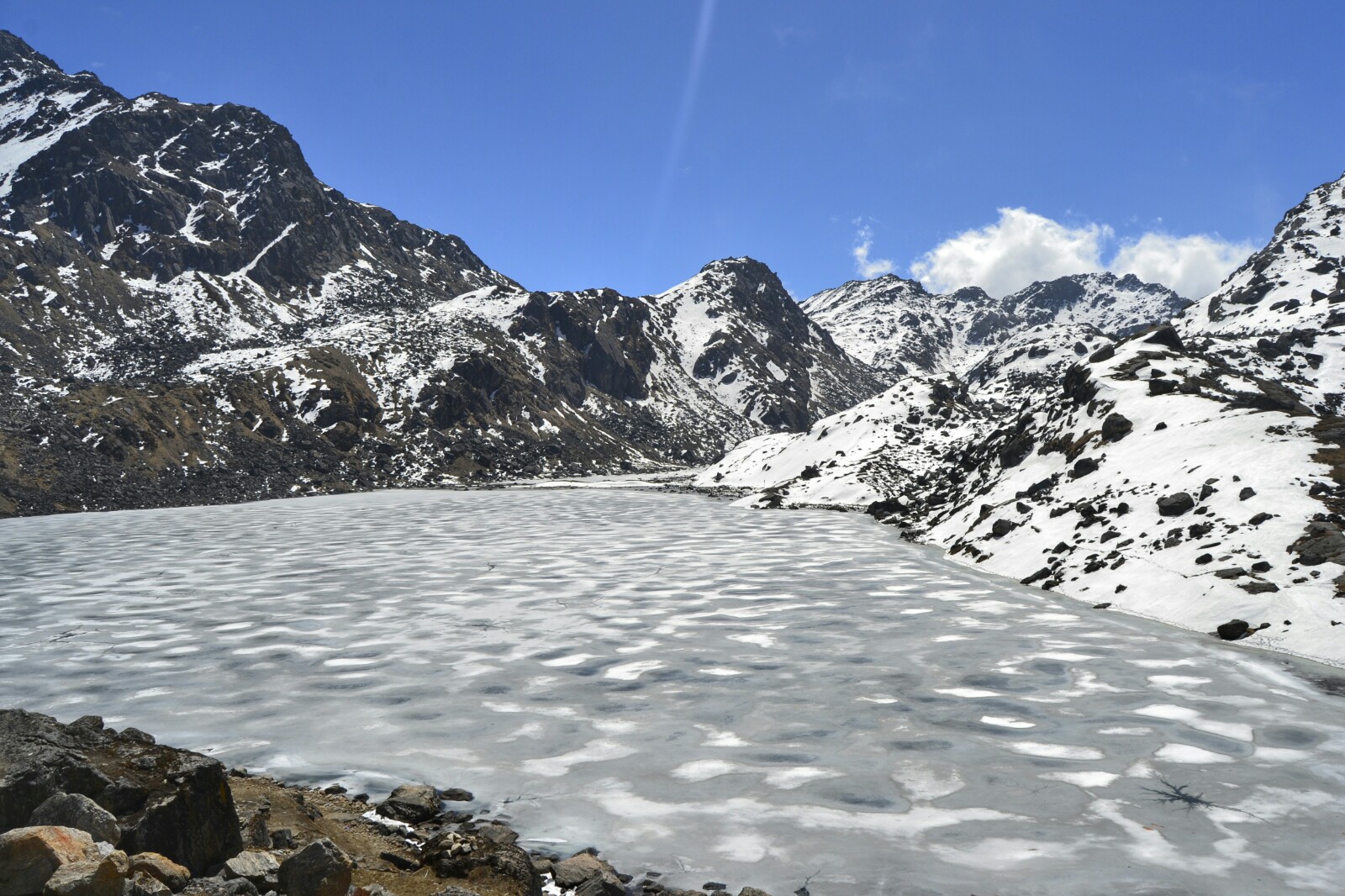 Antes de llegar a Gosaikunda nos encontramos con el primer lago real de todo el trekking: El Lago Bhairavkunda. Y sí… a pesar de ser ya 1 de abril, ¡estaba aún congelado!