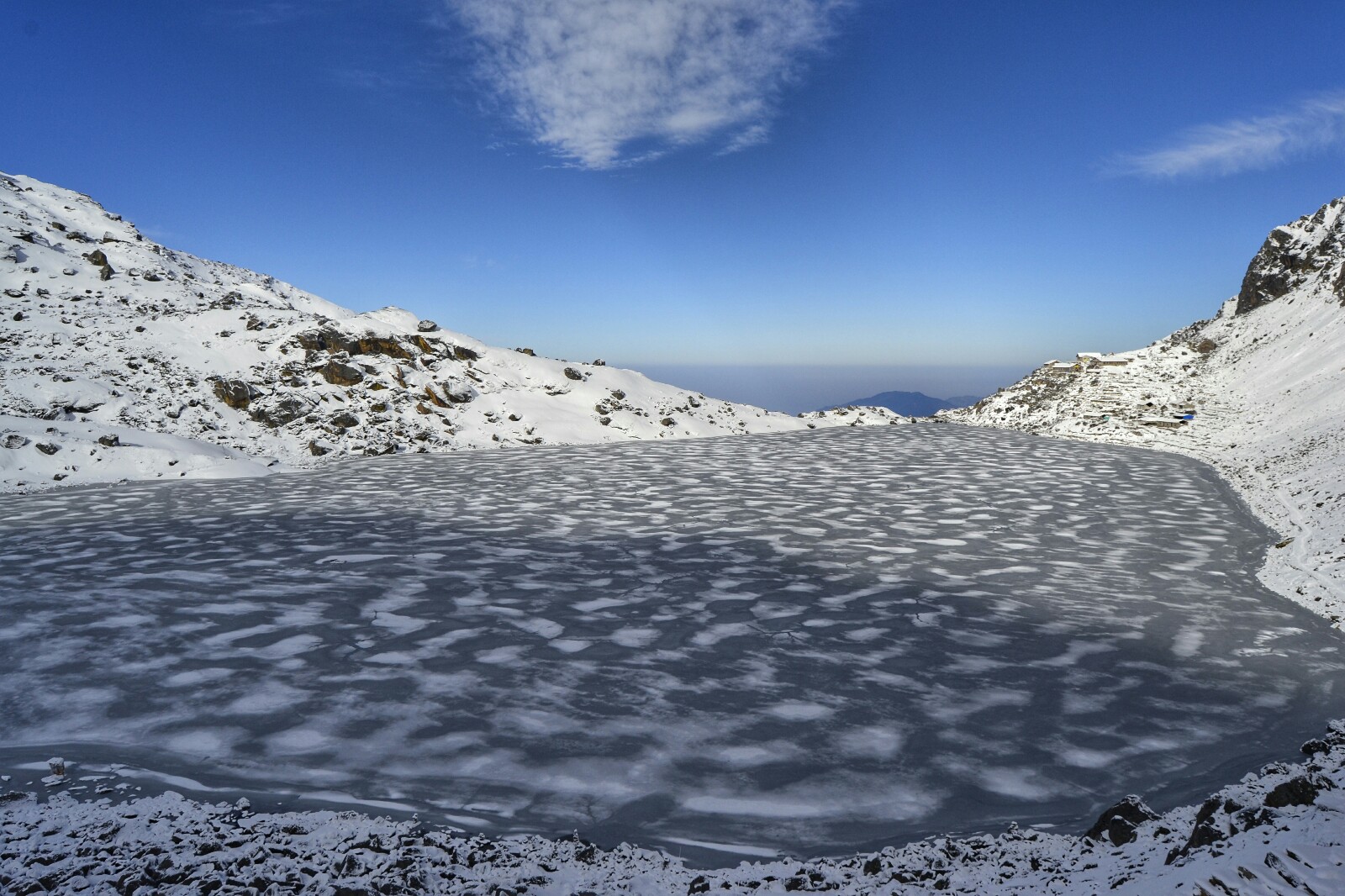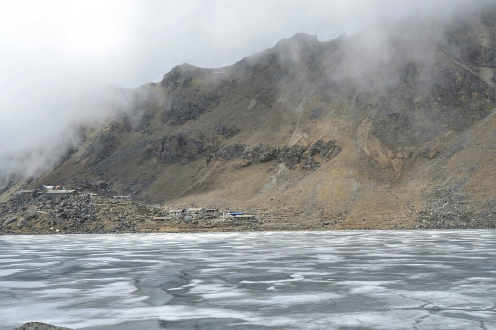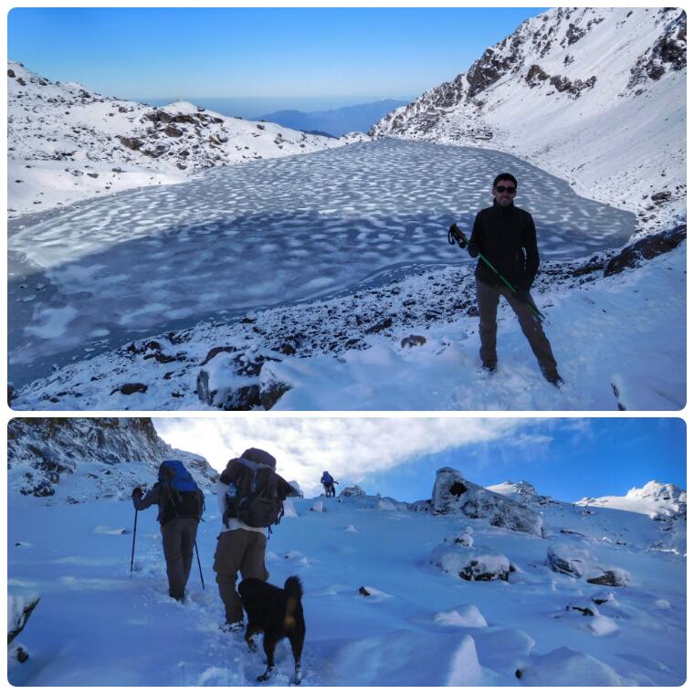 El Lago Ganesh Kunda fue el siguiente en aparecer, también congeladísimo por supuesto, y es que rondábamos ya los 4500 metros de altitud, ¡que no es ninguna broma!.