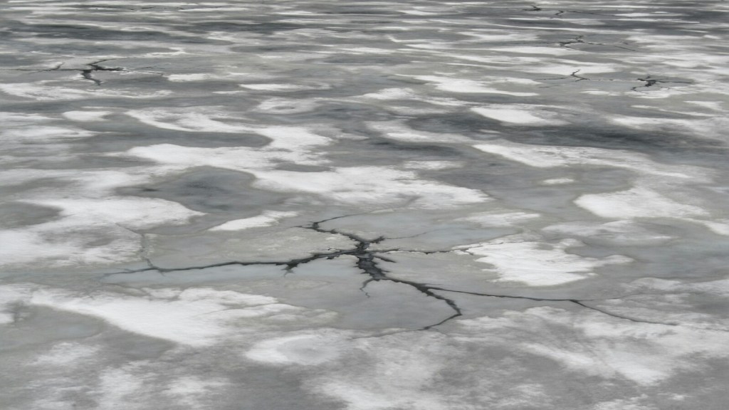 ¡Menuda pasada! Como está aún medio congelado pero empezando a derretirse se forman por toda su superficie una especie de colores y reflejos sobre el hielo que hacen que el lago parezca un lienzo en el que un pintor loco a lo Pollock ha vertido litros de pintura de diferentes tonalidades blancas y grises.