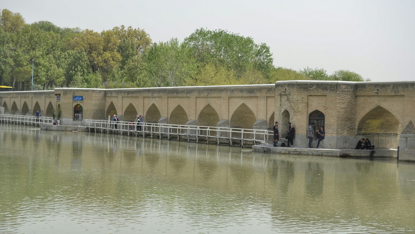 Al rato estábamos de nuevo en el genial parque que acompaña al cauce del Río Zayandeh y seguimos caminando hacia el este, dejando atrás el Pol-e Si-o-Seh hasta llegar al más pequeño y modesto (150 metros de largo y 21 arcos) Pol-e Chubi que fue encargado por el Shah Abbas II en 1665.