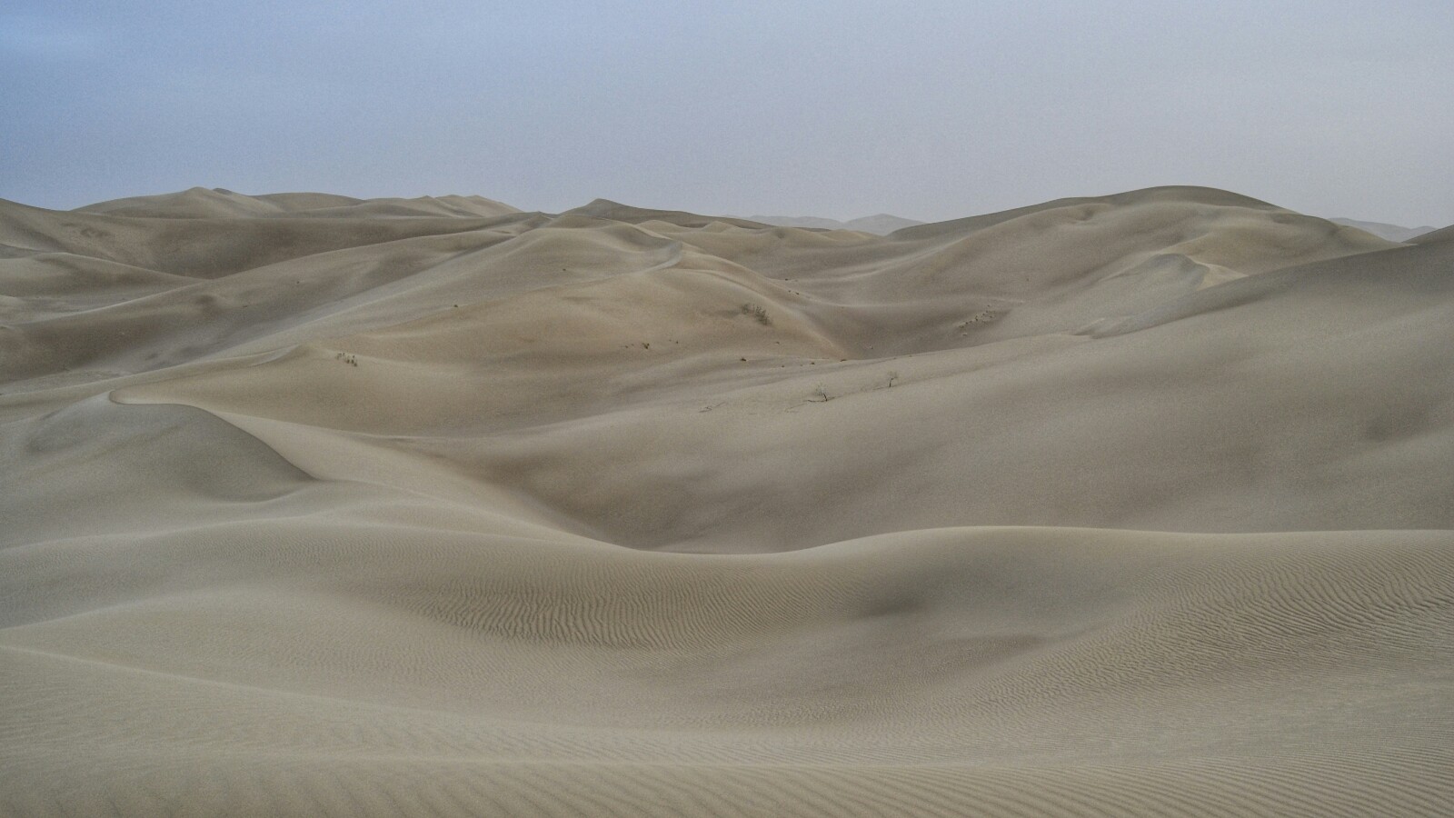 El día estaba bastante nublado, pero aún así la imagen de este desierto expandiéndose ante nuestros ojos hasta el horizonte fue bastante cautivadora. ¡Y lo que engañan estas dunas! No parecían muy grandes pero el hecho de ser pura arena fina hace que subir a lo alto cueste el doble de lo normal.