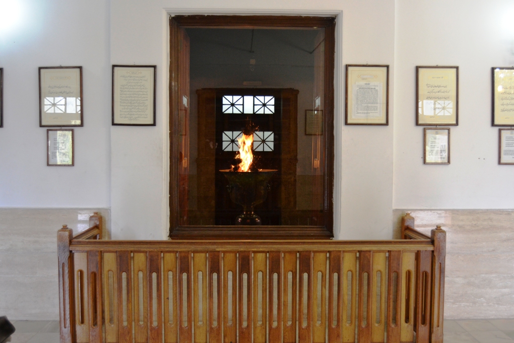 Esta llama que se mantiene viva en Yazd tiene mucha historia y hace que el habitual viaje de la llama olímpica parezca un chiste. El fuego que aquí se guarda comenzó a arder en el Templo de Pars hace más de 1500 años y dio muchas, muchas vueltas hasta llegar a Yazd en 1940 d.C.