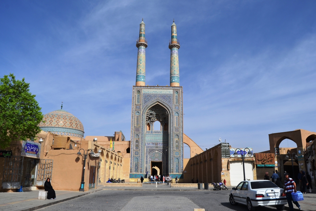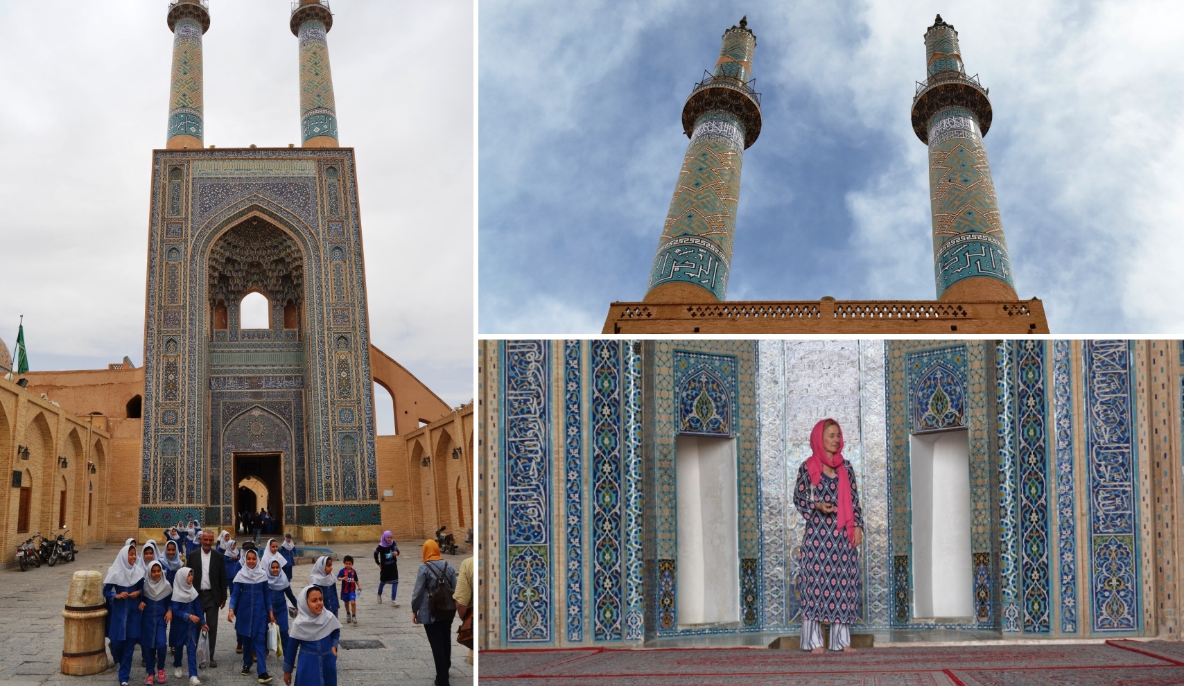 De todo lo que se puede visitar me quedo con esta magnífica mezquita, que de alguna forma marca la entrada a la parte vieja de Yazd. Su entrada es una de las más altas de Irán gracias a unos imponentes minaretes de 48 metros de alto.