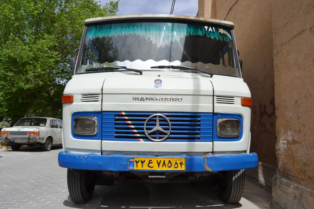 Nos hizo también mucha gracia encontrarnos con una de esas “photocopies” de las que nos había hablado el taxista con el que hicimos el trayecto Kashan-Isfahan. Símbolo de Mercedes y marca Irankhodro. ¡Si es que son geniales!