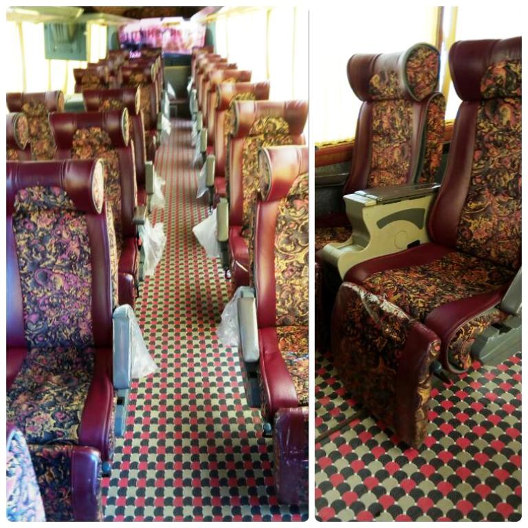 El autobús VIP que nos llevó de Yazd a Shiraz en unas escasas 6 horas es posiblemente el autobús más cómodo en el que haya viajado en mi vida. Vale que la decoración de estos autobuses de clase superior iraníes es, en general, tremendamente horripilante, pero los sillones se reclinan hasta conseguir un ángulo majo e incluyen una pequeña plataforma para las piernas. ¡Y qué decir del hueco entre asientos! Una maravilla.