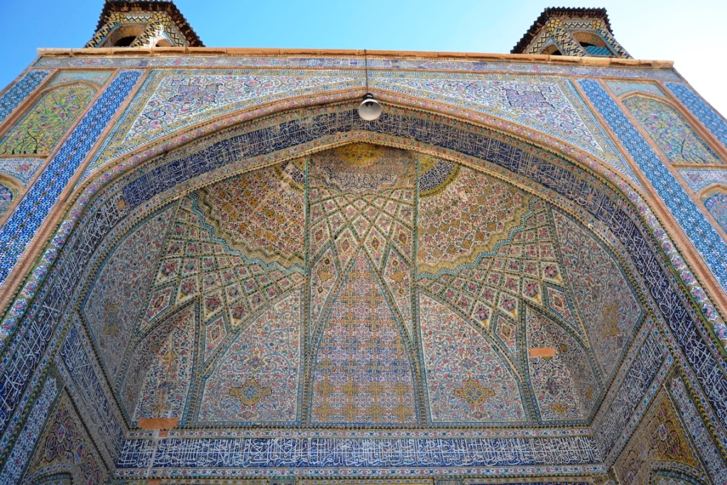 La mezquita en cuestión se construyó a finales del siglo XIX d.C., por lo que es bastante moderna, pero no por eso poco interesante. De hecho, es de las más famosas de Irán por el exquisito juego de colores que sus vidrieras reflejan en las paredes y suelo de su salón principal.