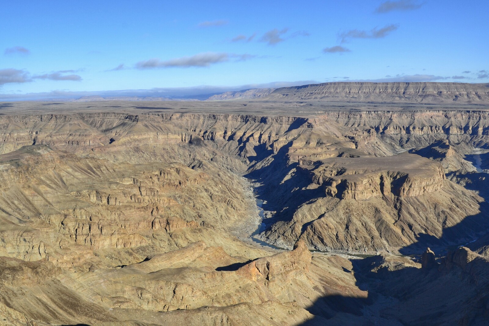 La razón fundamental de desviarnos al sur hasta este enclave cercano con a la frontera con Sudáfrica era visitar esta brecha en la tierra de 161 kilómetros de largo que en su punto más ancho alcanza los 27 kilómetros y en su punto más profundo los 550 metros de caída.