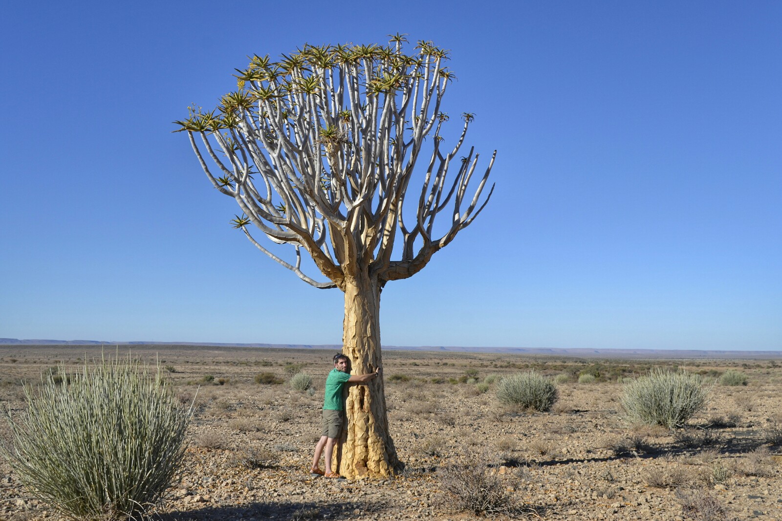 Una vez más nos sorprendimos con lo fuerte y resistente que puede ser la naturaleza. ¡Vida en este páramo! Poca cosa: un arbolillo y varios brotes en la tierra, pero vida al fin y al cabo. Lara y Darío se marcharon porque querían llegar temprano a las Hot Springs de Ai-Ais. Allí pasarían sus últimas noches antes de volver a Sudáfrica.