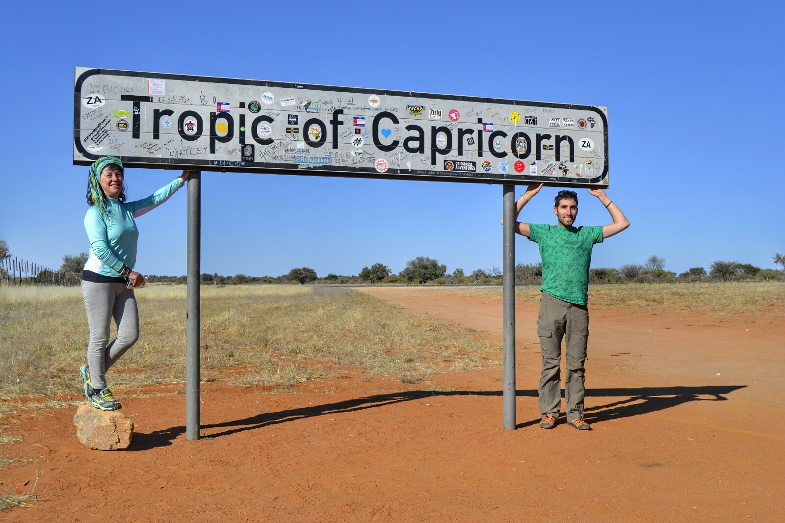 Años atrás había estado en el Trópico de Cáncer en lsla de Great Exuma en Bahamas, y ahora estaba cruzando el de Capricornio (ya sólo me falta el Ecuador). Paramos por supuesto a hacer una foto y disfrutar del momento.