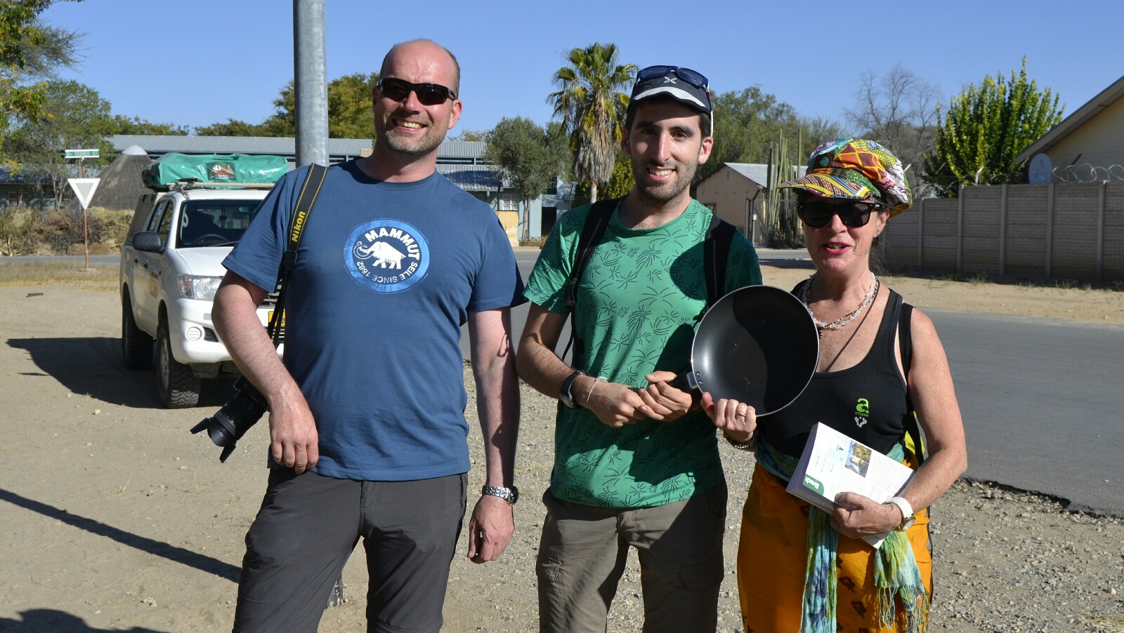 Parece ser que una señora holandesa no necesitaba esa sartén y se la dio a estos chicos en un campsite en Lüderitz. Ahora, a punto de terminar su viaje por Namibia, ellos nos la pasaban a nosotros con el cometido de que alguien la herede antes de que nos marchemos. ¡Es como un Bookcrossing culinario! A ver si con algo de suerte encontramos a alguien que quiera recoger el testigo en los últimos días de nuestro paso por Namibia.