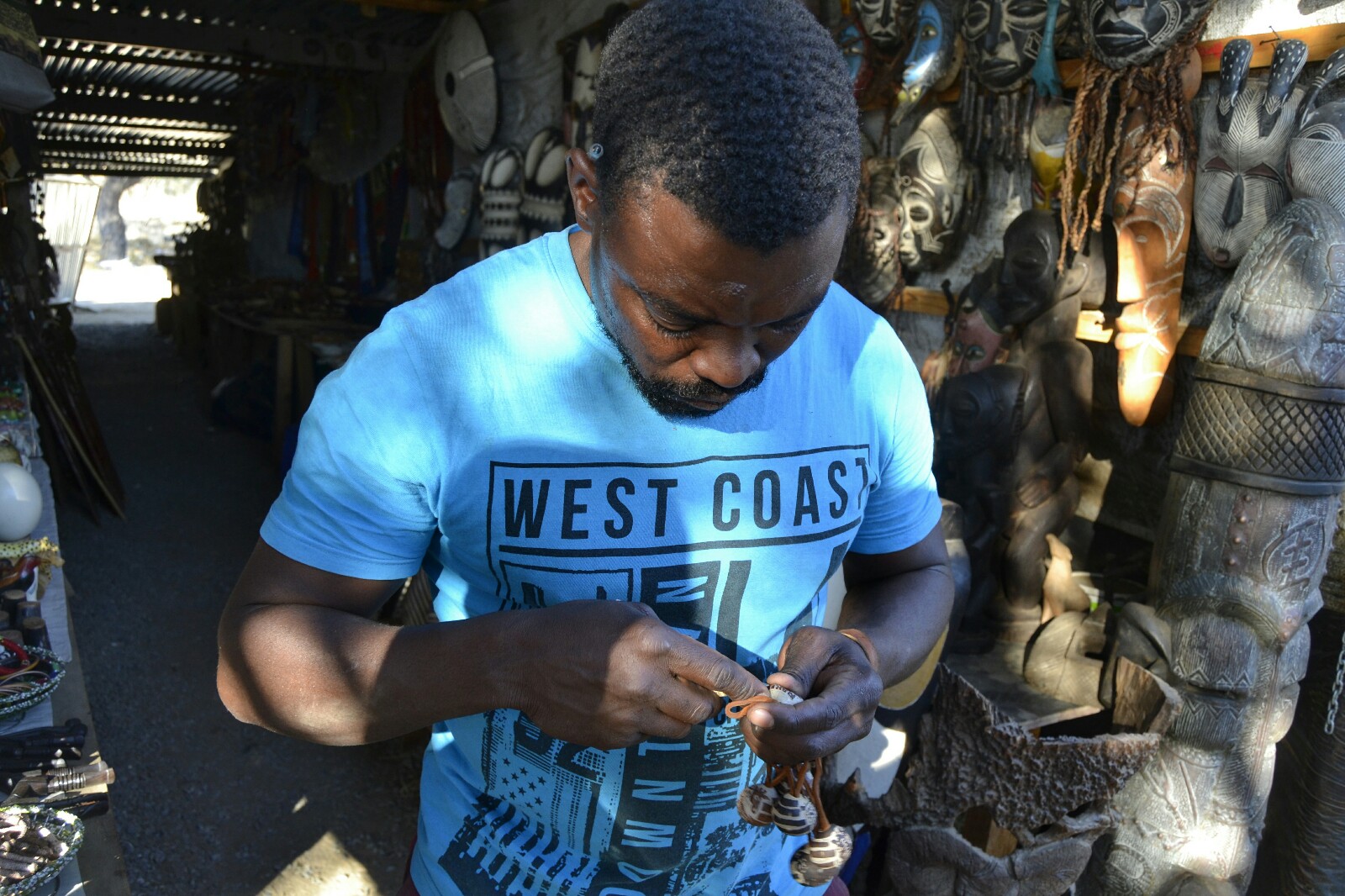 Todos los puestos tienen algo único y distintivo, es un mercadillo pequeño pero muy interesante para quien le guste la artesanía. Y así, parando aquí y allá, todo ese tiempo extra que teníamos para llegar al Waterberg con calma y de día había desaparecido y una vez más íbamos a llegar ya con noche cerrada. ¡No tenemos remedio!