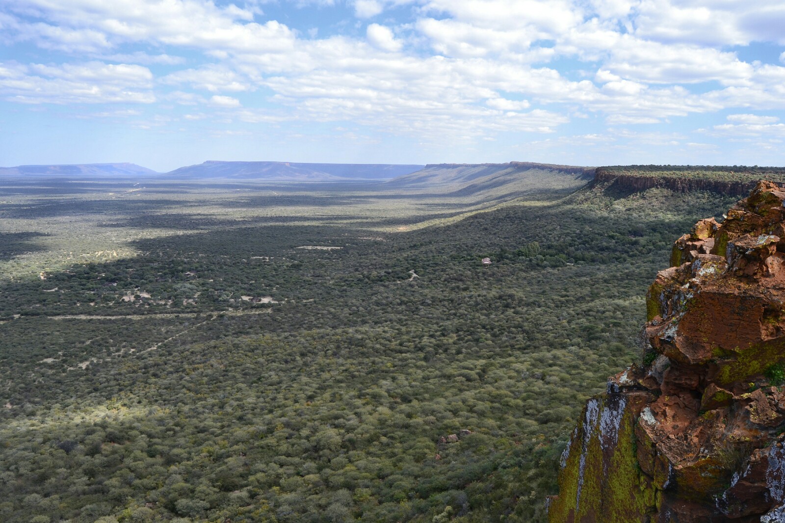 Las vistas rápidamente se vuelven magníficas. ¡Y vinimos a Namibia con la palabra “desierto” inscrita con fuego en nuestro cerebro! La zona del Waterberg Plateau es una inmensidad verde abrumadora, de la que no se le llega a ver el fin.