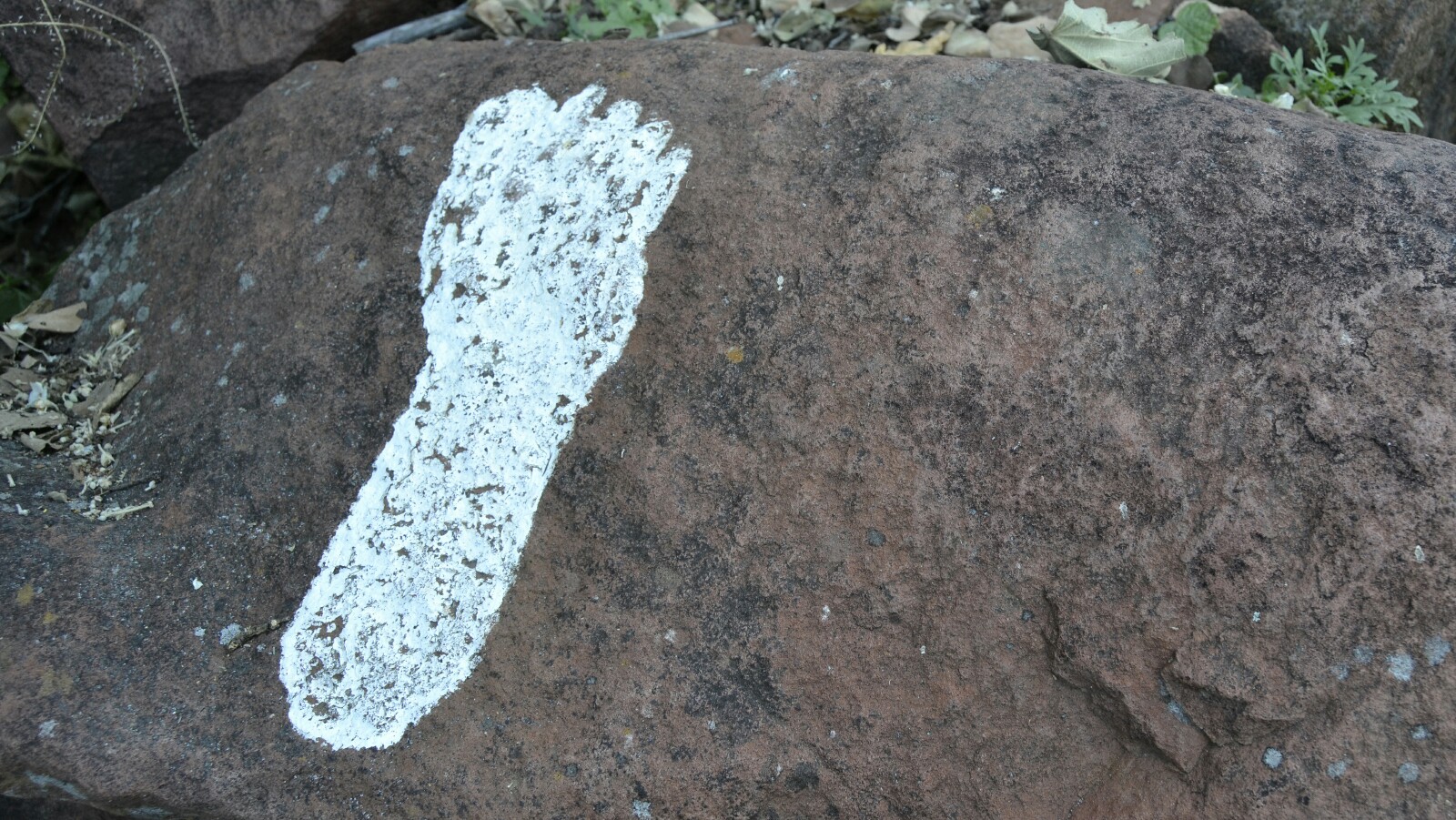 Dejamos el coche en el punto que nos habían señalado en el mapa y empezamos a seguir las indicaciones para subir, marcadas por pies blancos pintados en las rocas.
