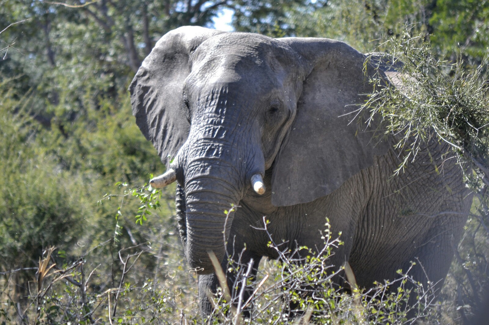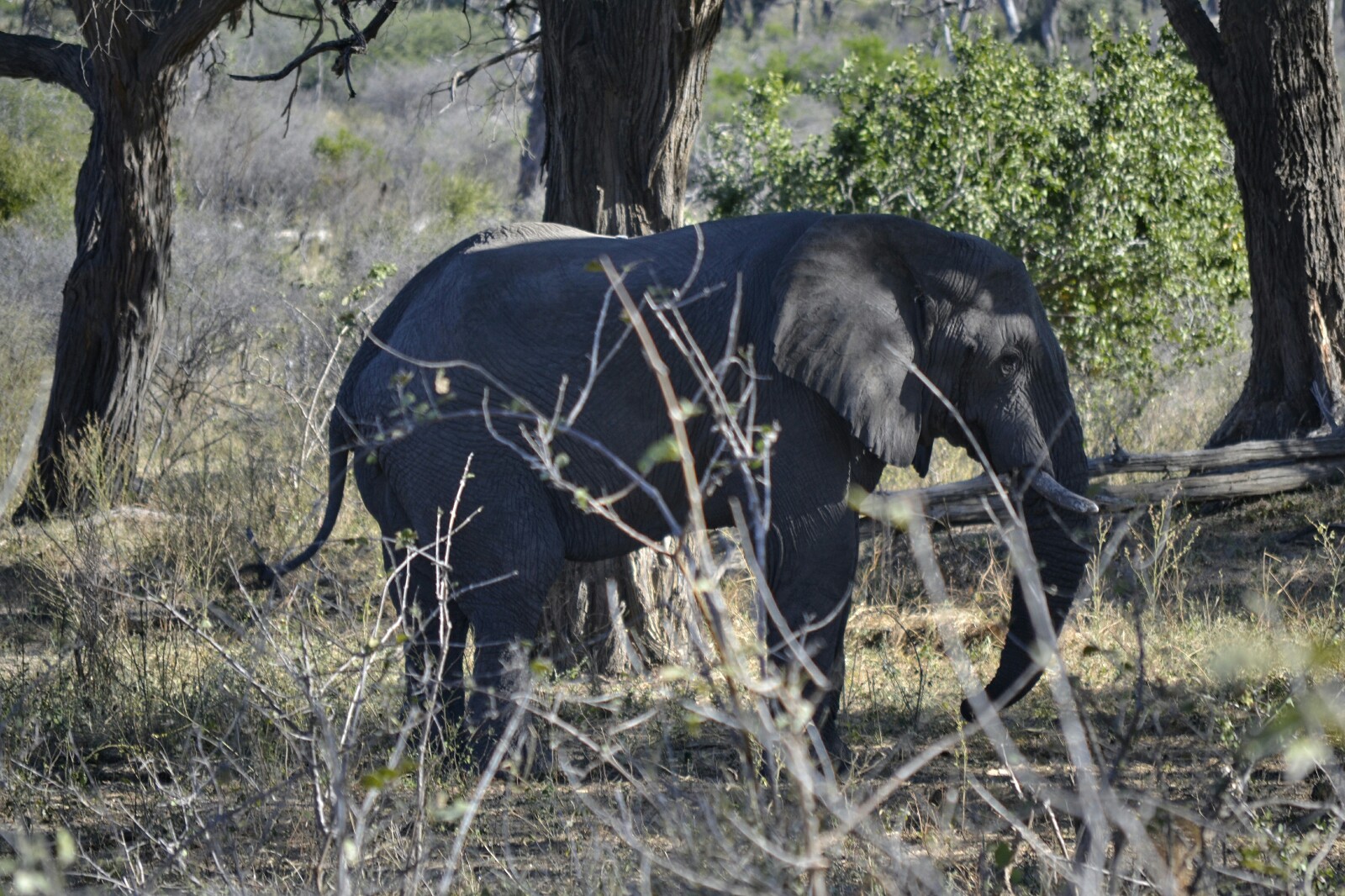 Nos quedamos un rato observándolo. ¡Estaba mucho más cerca que el otro elefante que habíamos visto el día anterior en Mahango! Se quedó mirándonos un rato y después se adentró en el espesor de la naturaleza a ritmo pausado.