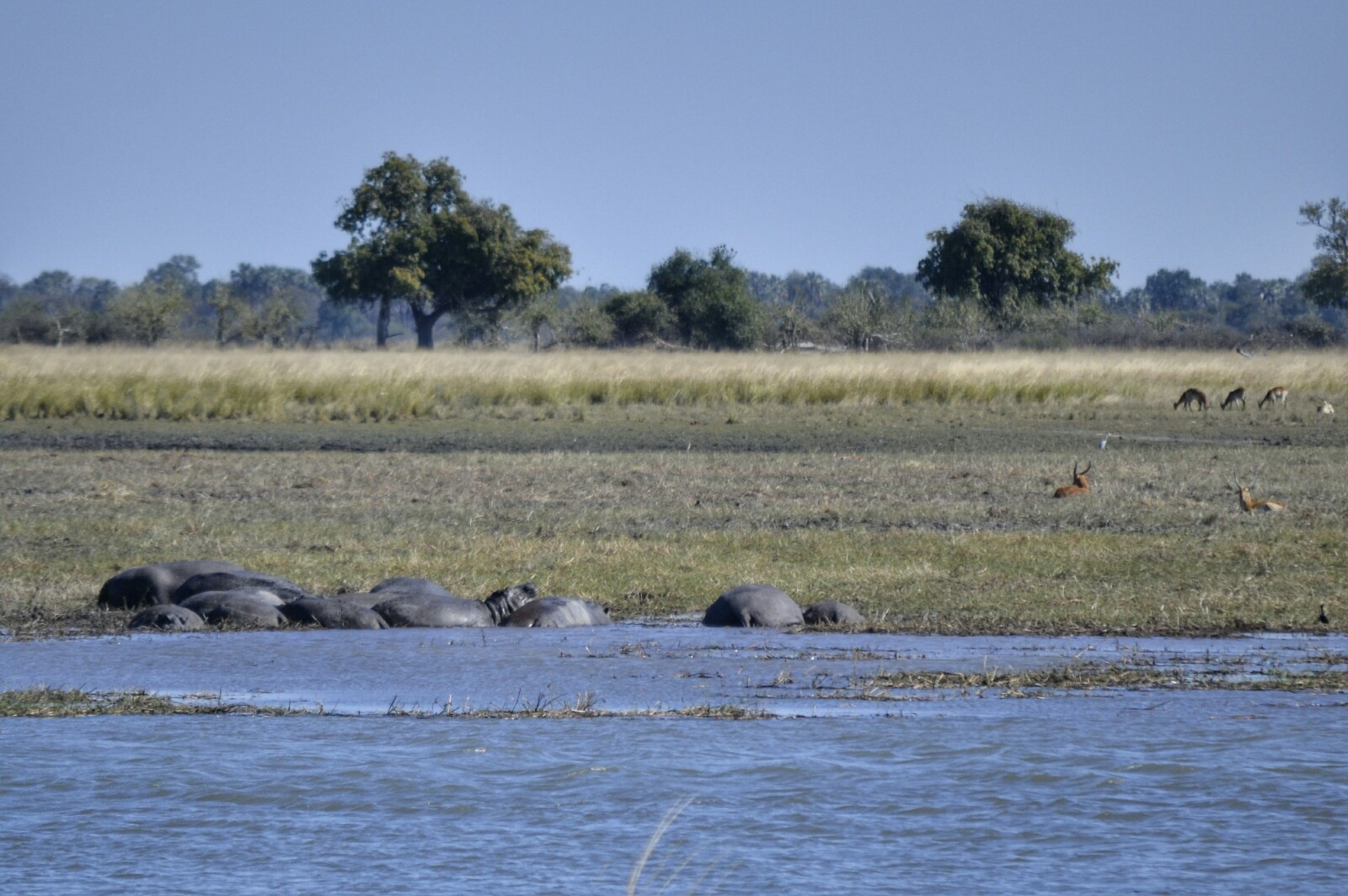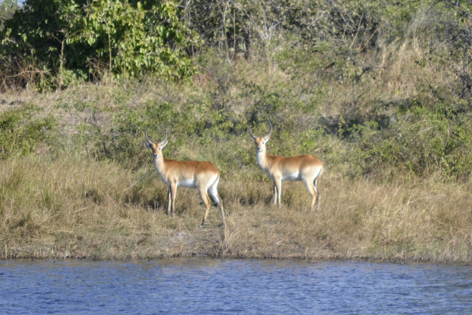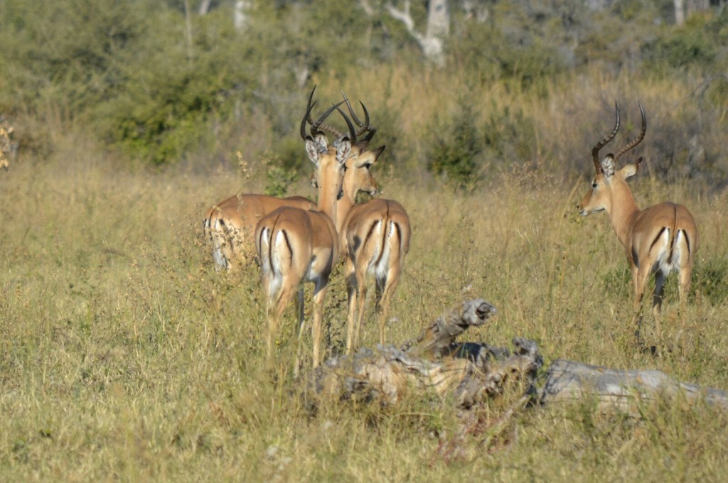 Volviendo al río nos encontramos esta vez con una manada de Antílopes Lechwe. Es la primera vez que veíamos este tipo de antílope que mide aproximadamente un metro de alto y pesa casi 100 kilos.