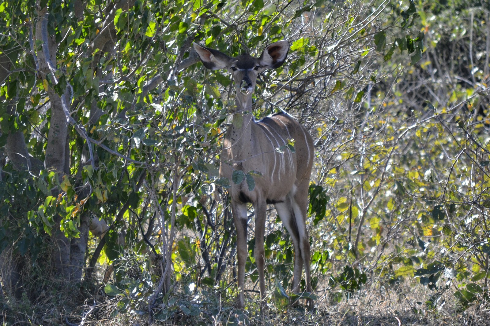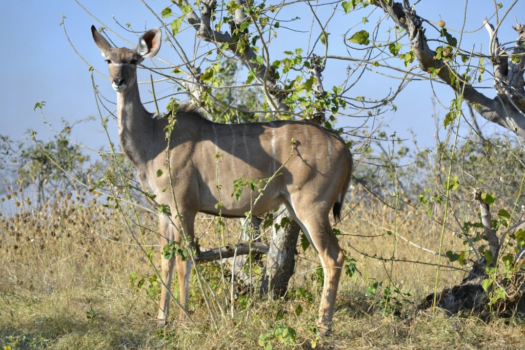 De tanto mirar para este pájaro casi se nos pasa por alto que alguien nos estaba observando detenidamente. Y es que debajo del árbol había un precioso Kudu que no nos sacaba ojo.