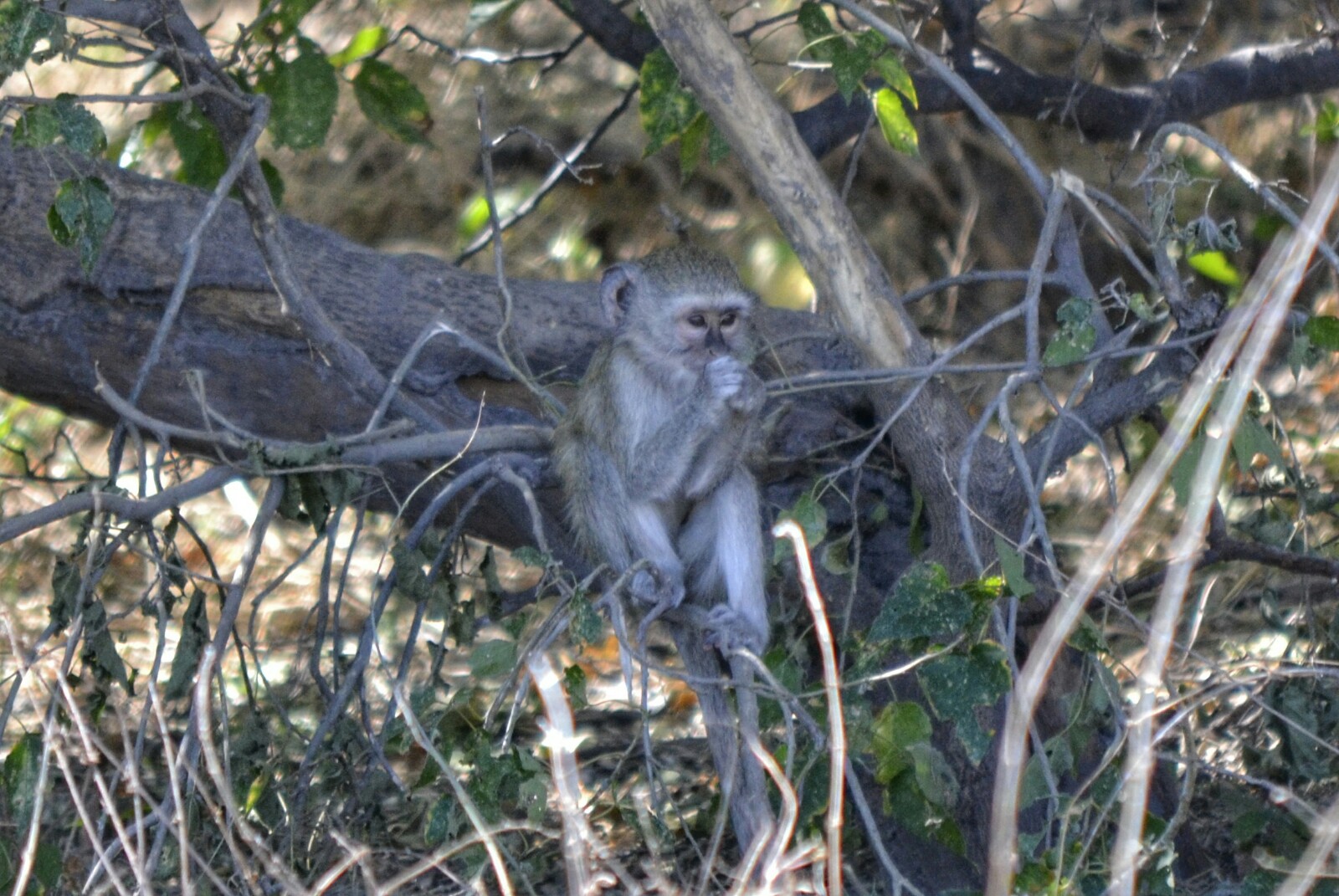 - Un mono-bebé que estaba descansando encima de una rama.