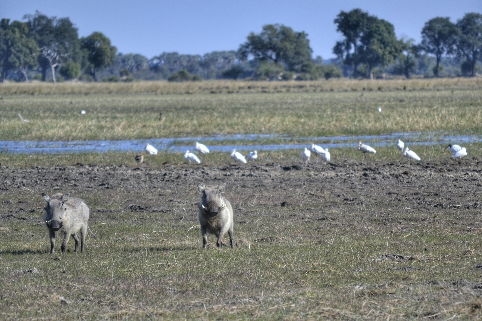 Primero nuestros amigos los warthogs (facóquero común). Son omnipresentes, allá donde vayamos siempre acaban apareciendo para saludarnos. La verdad es que ya les tenemos hasta cariño, ¡son como de casa!