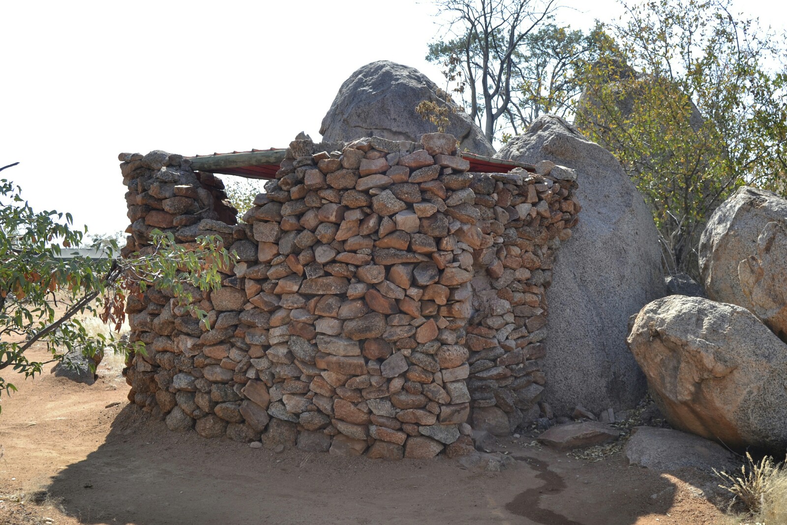 El baño es quizá de los más estupendos que hemos tenido. Junto a unas rocas enormes construyeron una caseta de piedras con un baño completo dentro y con techo semidescubierto donde me había duchado por la noche con las estrellas de Namibia encima de mi cabeza. ¡Una pasada!