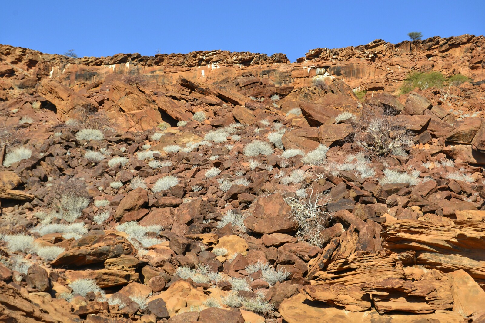 Al día siguiente tuvimos una increíble sorpresa al despertarnos. El camping nos pareció tan impresionante que decidimos quedarnos un par de horas dando paseos por nuestra parcela y los alrededores, disfrutando de la naturaleza de Damaraland por primera vez, muy diferente de lo que habíamos visto hasta ahora.
