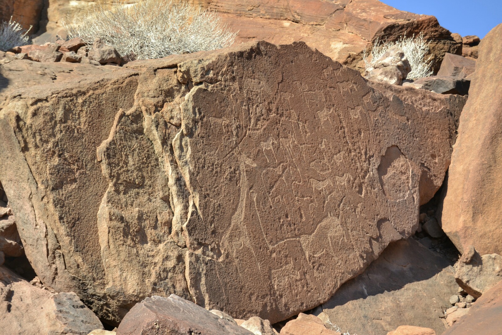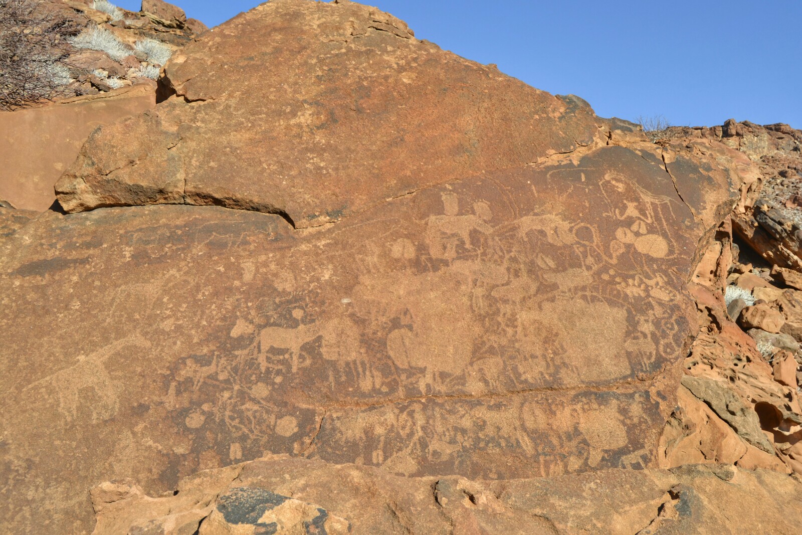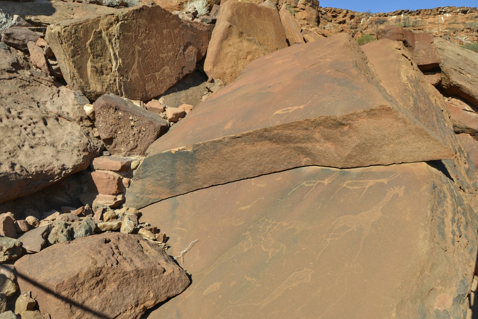 Las enormes piedras de esta región están decoradas con cientos de pinturas y grabados que consiguieron que el sitio se declarase Patrimonio de la Humanidad por la Unesco en 2007 (el primero de Namibia).