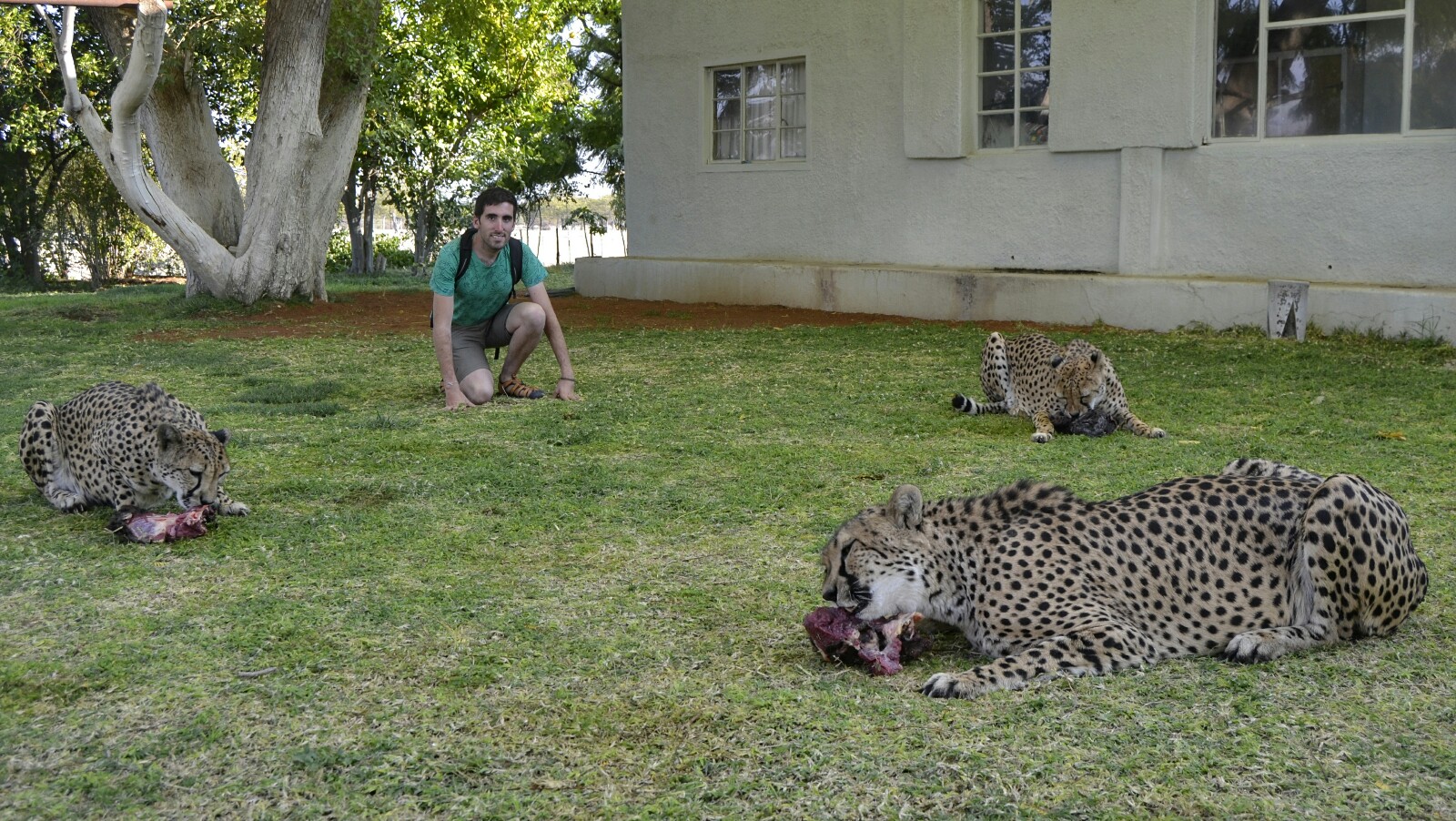Por lo que le entendí, son guepardos de la zona que recogió él porque estaban en riesgo de ser tiroteados por la gente local . Qué guay, ¿no?, saber que vives en una zona con guepardos correteando libremente por ahí… Parece ser que huyen de los humanos, pero aún así…