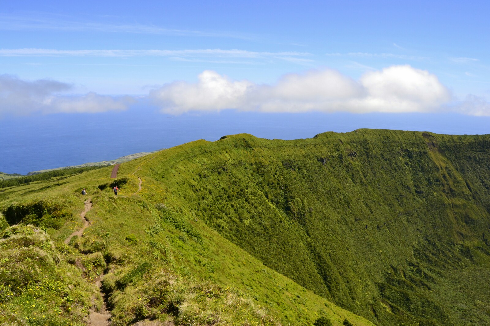 La circular de la Caldera de Faial es la ruta estrella de la isla: es relativamente sencilla (tanto en dificultad como en el itinerario, imposible perderse) y combina la exótica idea de dar la vuelta a un impresionante cono volcánico con las mejores vistas de la isla (¡y de las islas cercanas!) gracias a su estratégica situación en el centro geográfico de Faial.