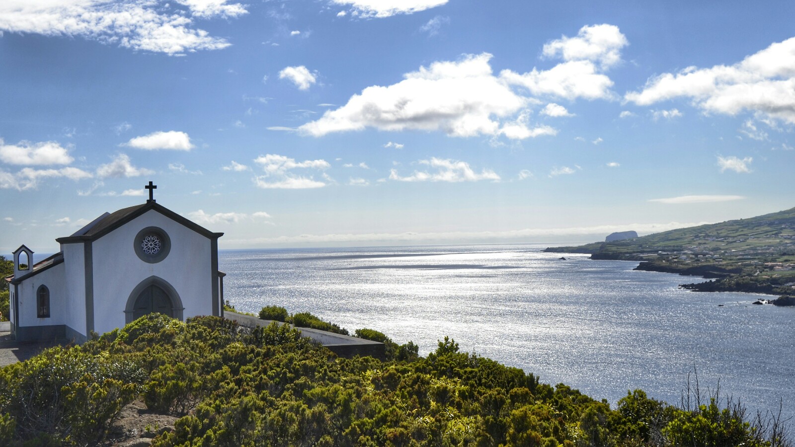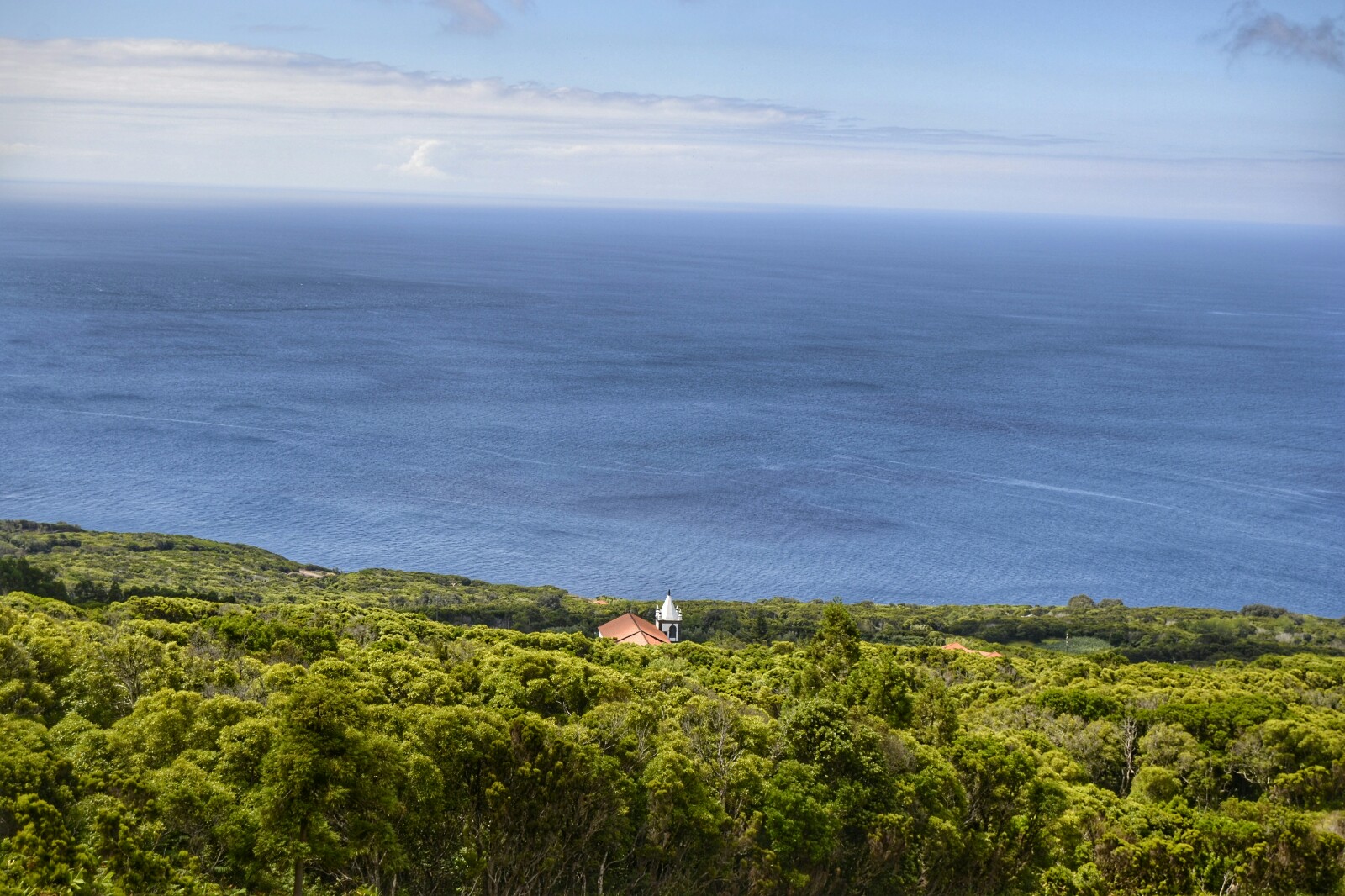 Además de la bonita capilla, rodeada de verde y acogida por el océano, si el tiempo lo permite hay una vista estupenda de la costa de Faial desde Horta hasta el Morro do Castelo Branco.