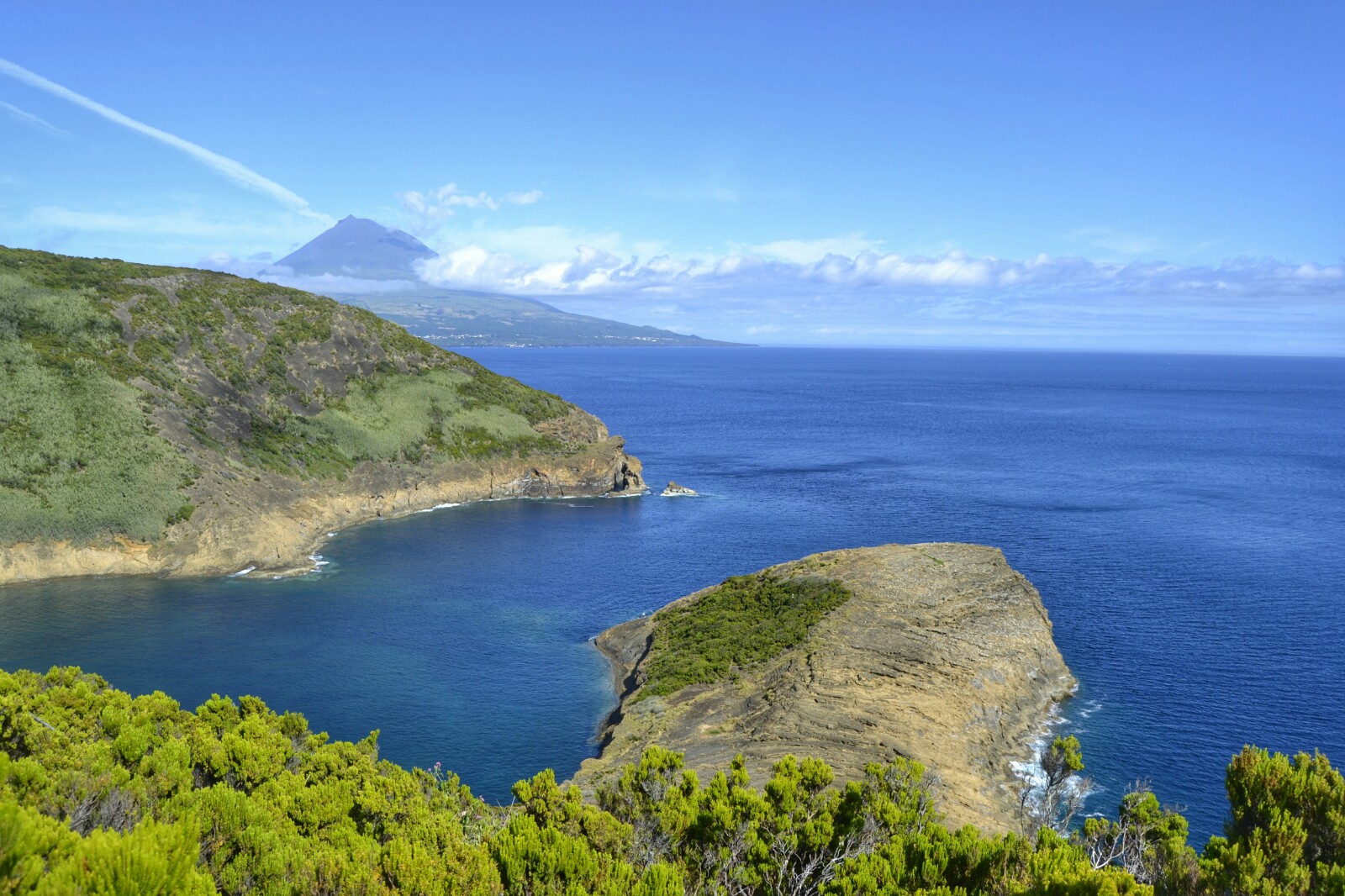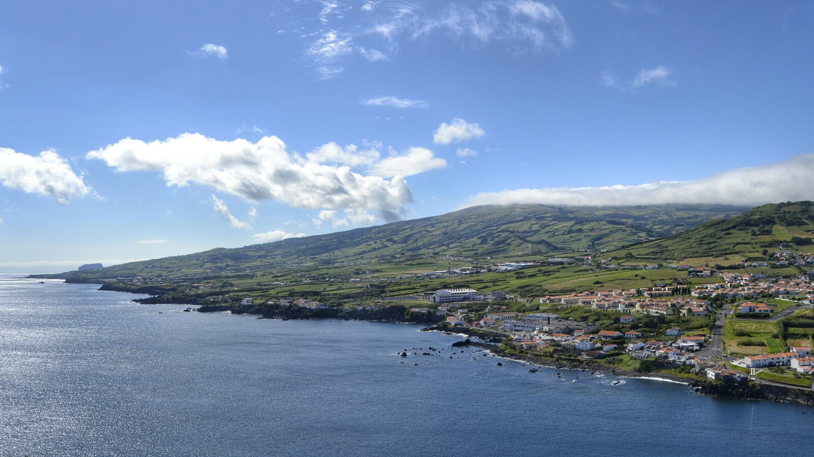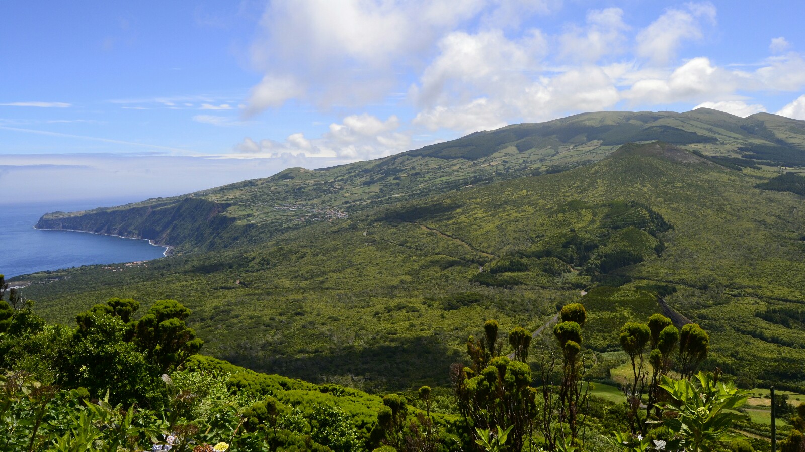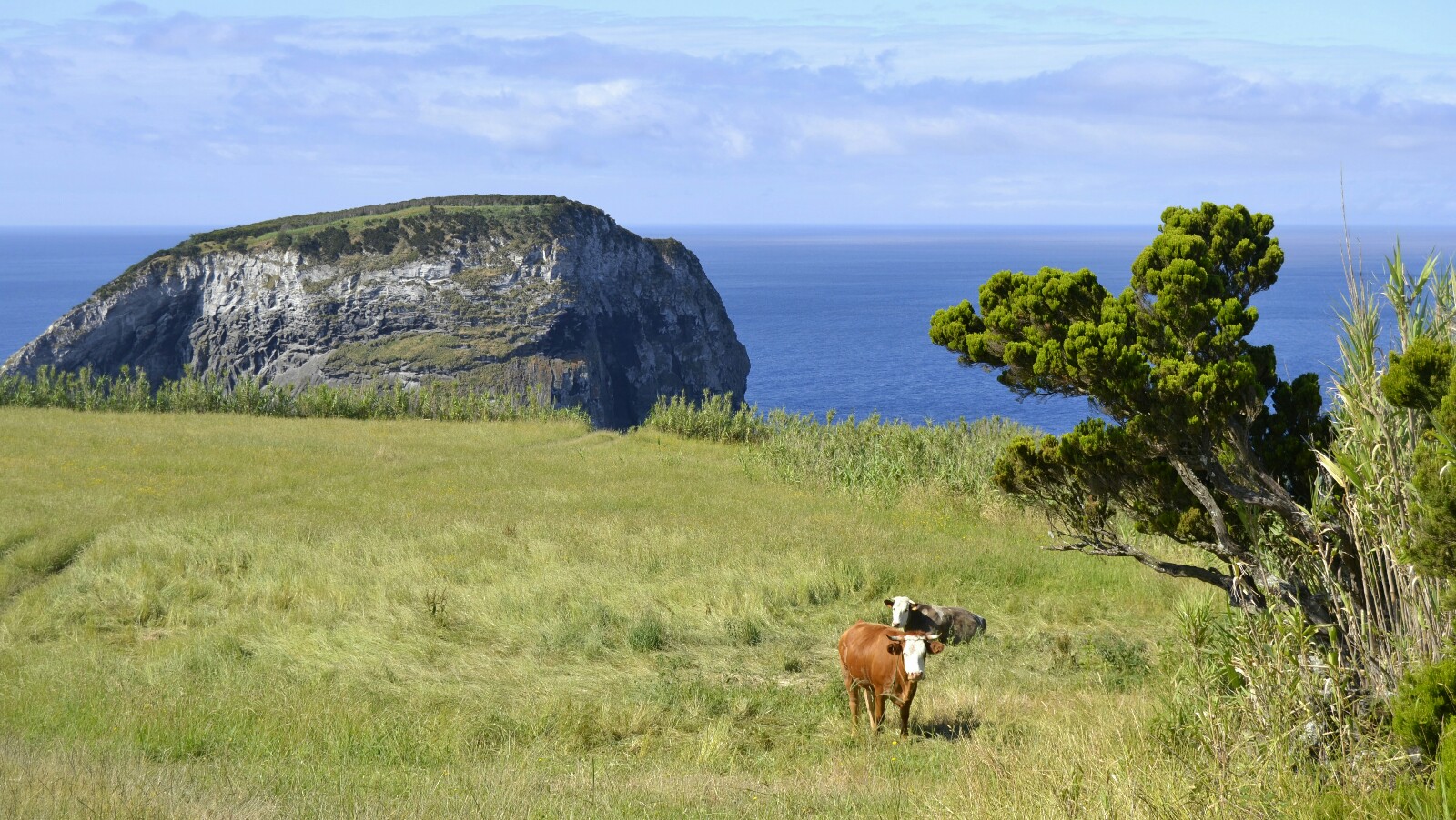 empiezan a hacerse más visibles, completando el paisaje verde intenso con el azul atlántico de las Azores.