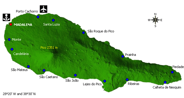 – Cómo Llegar en Barco: la comunicación más rápida y directa es con Faial desde el puerto de Madalena, con varios ferrys al día (30 minutos, 4€). También hay ferrys conectando Madalena o Sao Roque con las islas de Sao Jorge y Terceira (5-6 horas, 32€). Todas las líneas y horarios están muy bien especificados en la página web de la compañía.