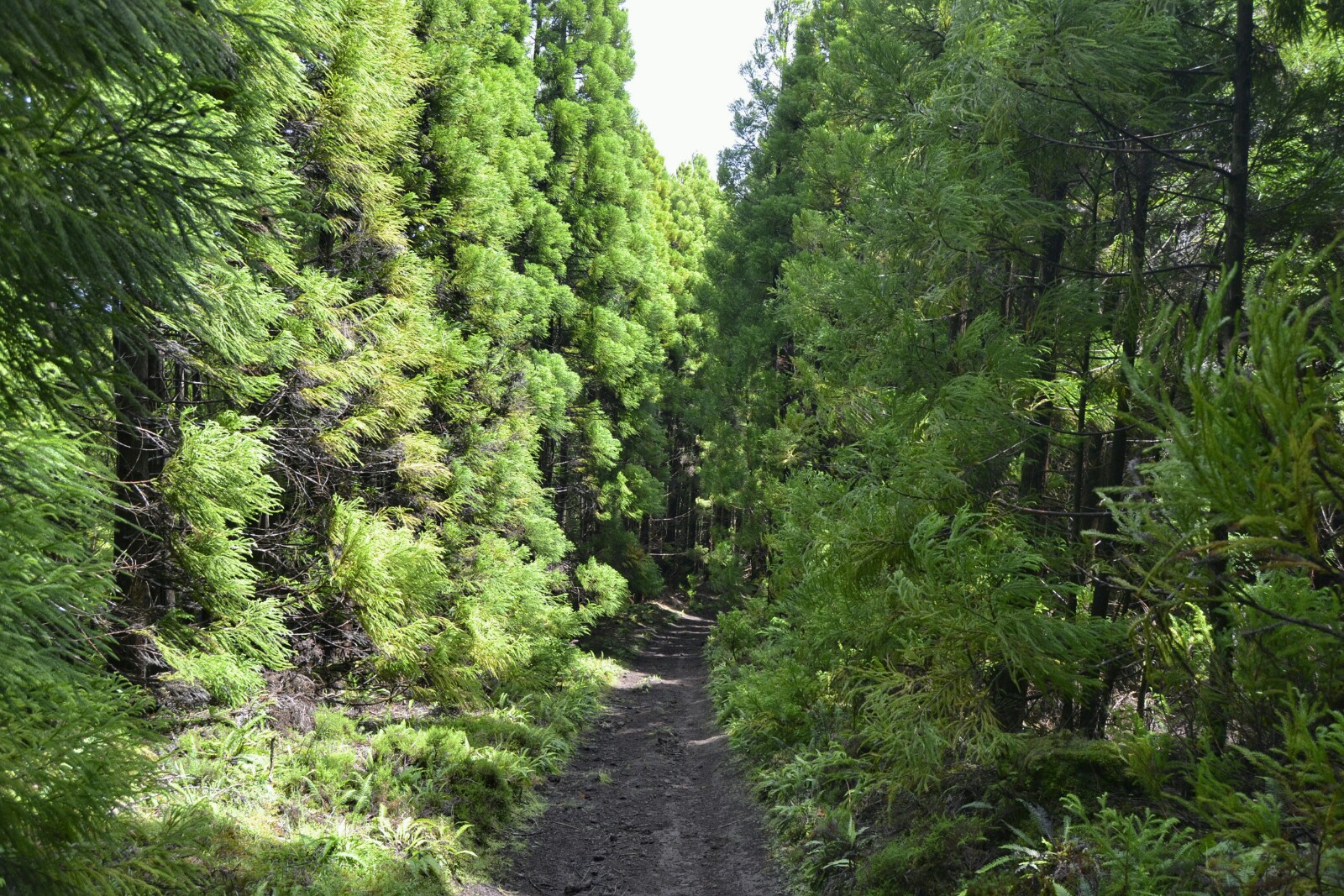 Ya de nuevo en el camino principal, seguimos las indicaciones en dirección al Pico das Cruzinhas, integrado en la Reserva Florestal de Recreio do Monte Brasil, pasando nuevamente junto a la caldera del volcán.
