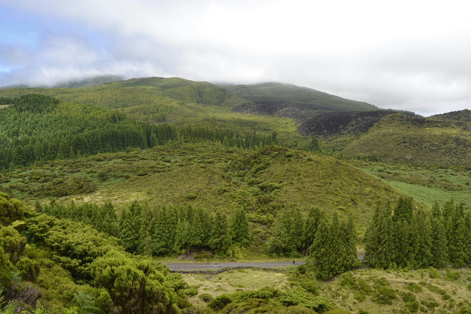 Desde el Pico do Gaspar se llega rápidamente al punto de inicio de la ruta siguiendo la carretera que, a su vez, nos va regalando unas nuevas panorámicas de este verde volcán desde otro ángulo.