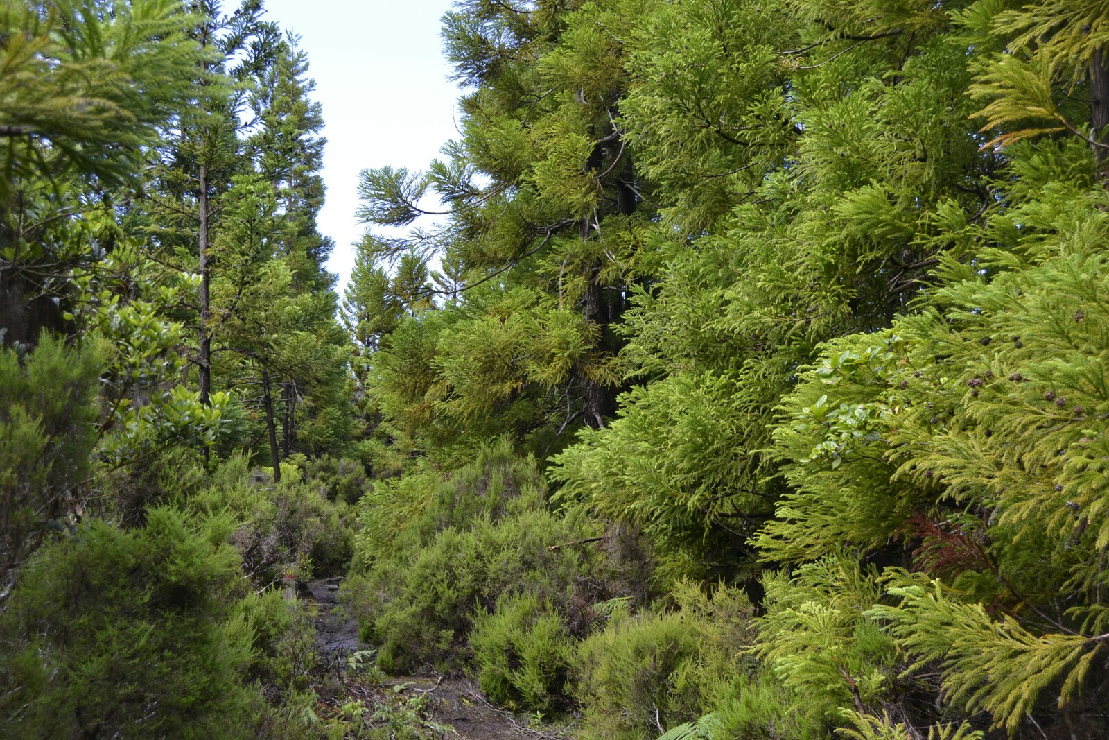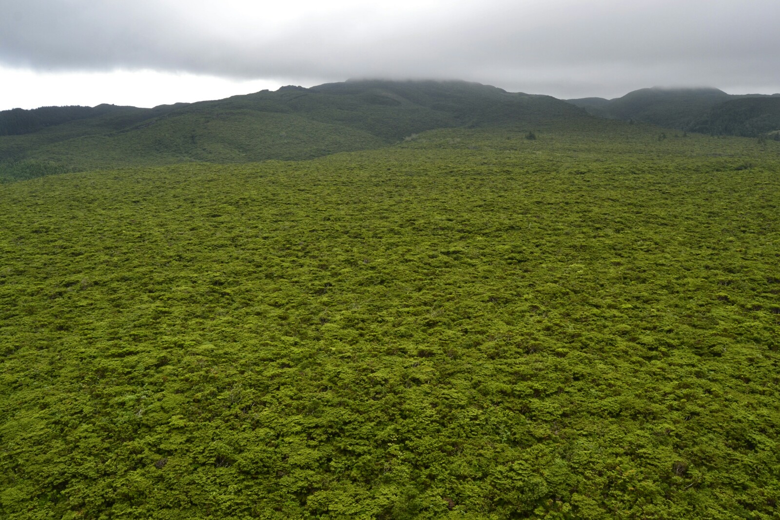 Después de un buen rato subiendo, el bosque empieza a abrirse poco a poco y la vegetación se vuelve más baja, empezando el habitual contraste de tonalidades de la vegetación azoreña.