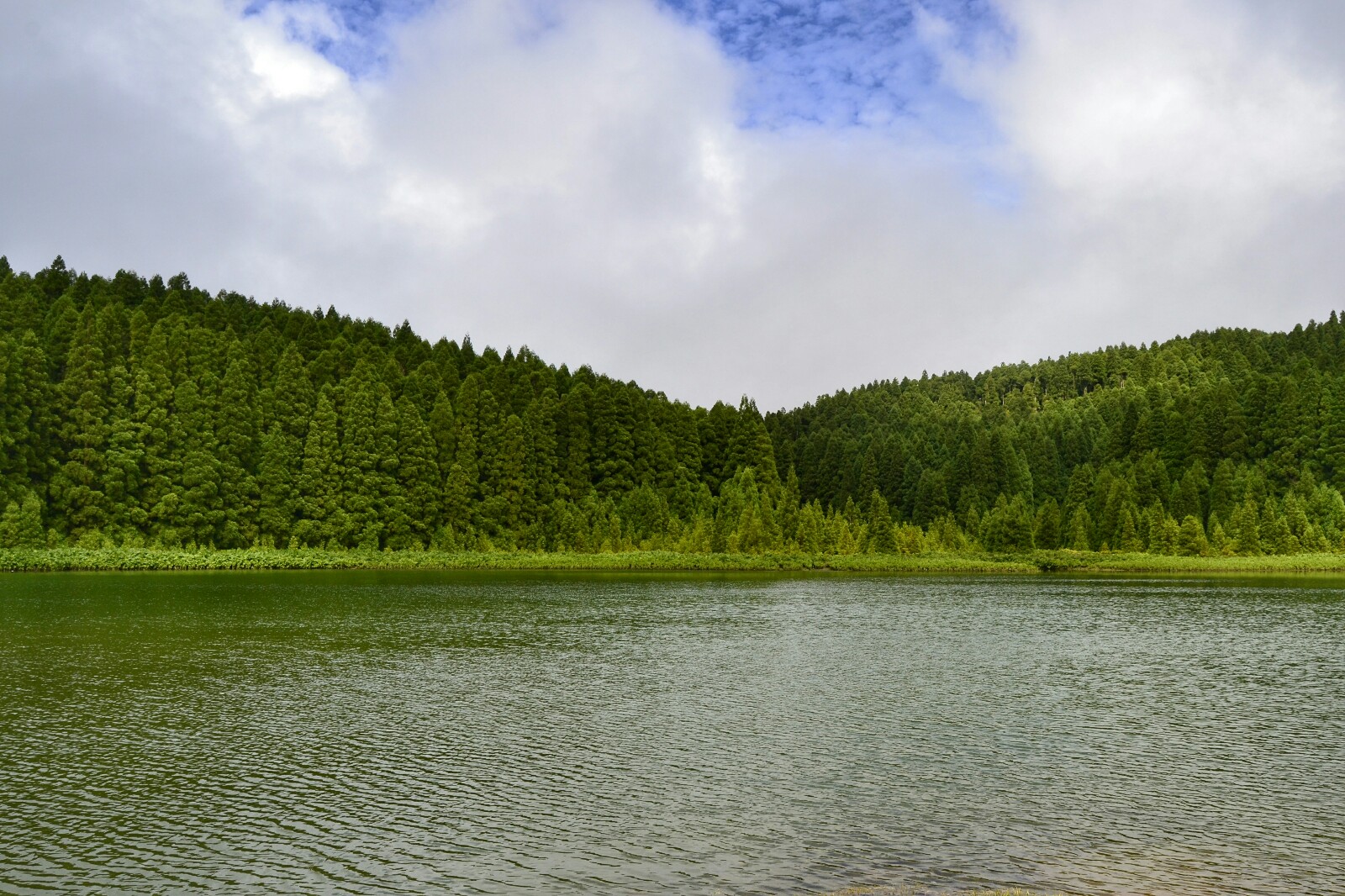 Unos minutos después de empezar a caminar llegamos a la Lagoa do Canário. Es preciosa: está escondida en un bosque de cedros japoneses (especie endémica de Japón pero que fue introducida en Azores para explotación maderera) y helechos. Parece la típica estampa canadiense, solo le falta la casita del lago y la canoa.