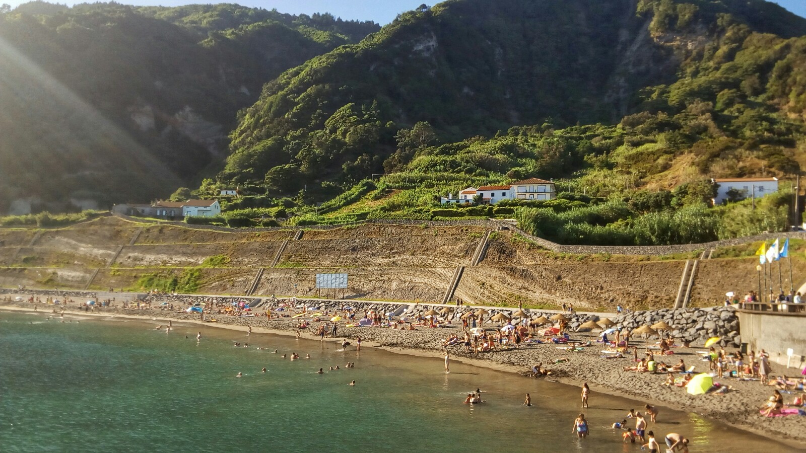 - Termas da Ferraria: Aquí hay un spa de pago que no tiene demasiado interés. Pero, siguiendo un camino que lleva hasta un entrante del mar en la roca, hay acondicionada una zona de baño donde el agua del mar se calienta por el efecto de la actividad volcánica residual de la zona. Resulta muy curioso notar los contrastes de la temperatura en función de como se mueven las olas.