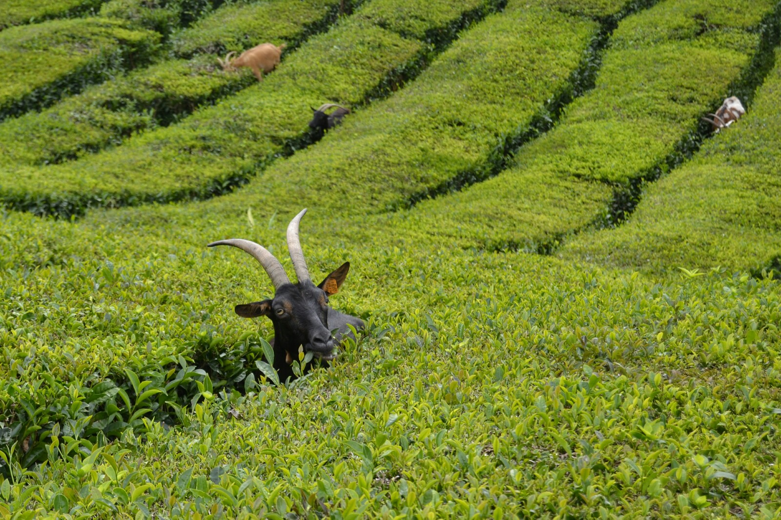 Sí, sí, tal cual. Parece ser que las hojas de té son demasiado amargas para ellas y no se las comen, pero sí que triquiñan todo lo demás, de modo que campan a sus anchas por los pastos haciendo labores de limpieza gratuita.