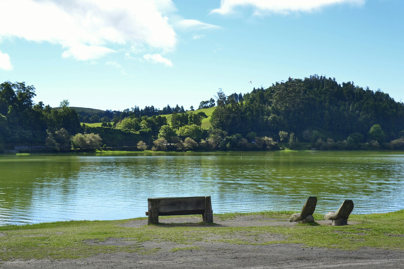 Justo a continuación de las fumarolas hay unos bonitos bancos mirando a la lagoa para quien quiera sentarse y relajarse un rato antes (o después) de ponerse a caminar.
