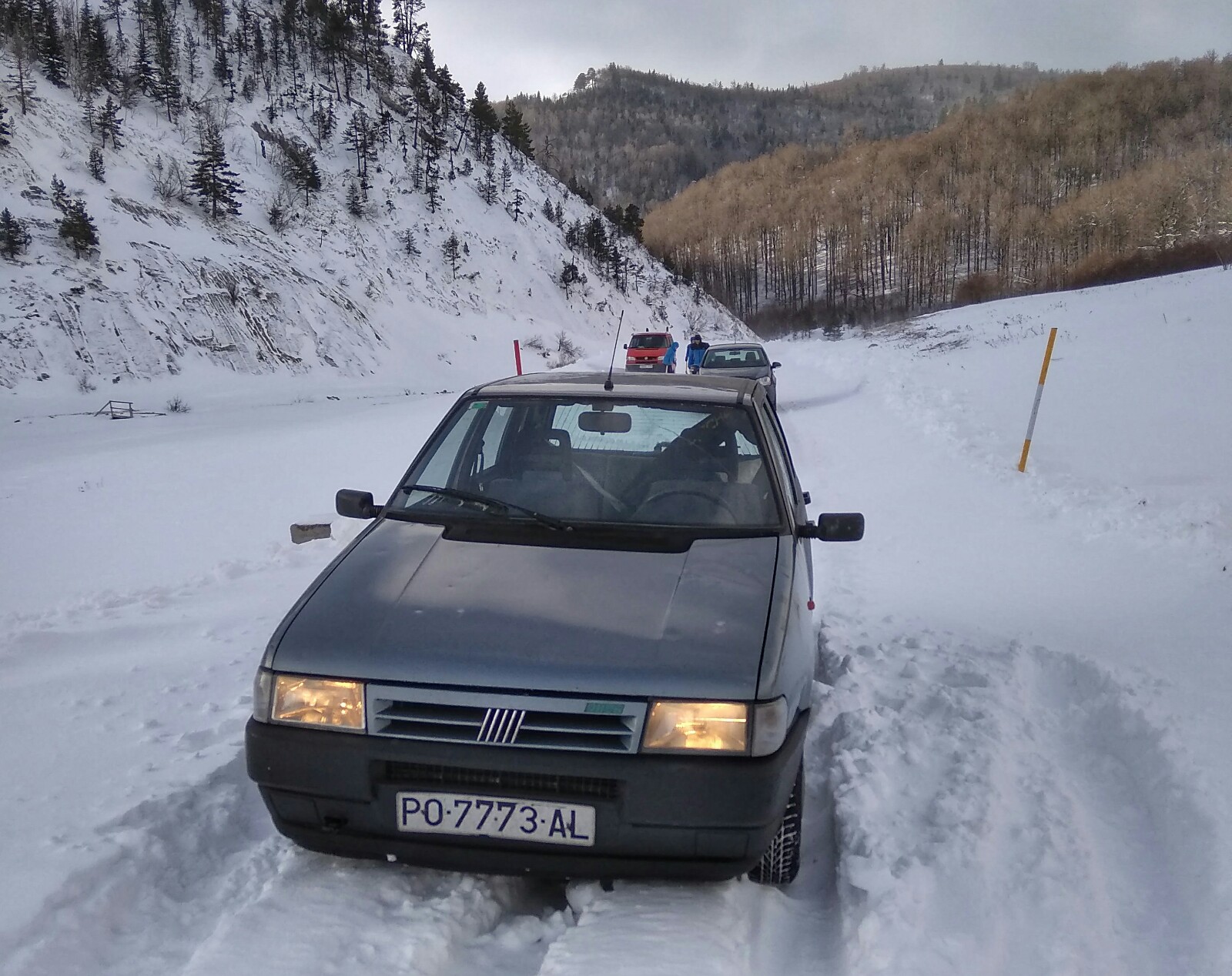 Yo no tuve ningún problema. Mi coche inmortal de 27 años con neumáticos estrechos y de invierno iba como la seda, pero el coche moderno que tenía delante no corrió la misma suerte y se quedó atascado a unos 200 metros del refugio.