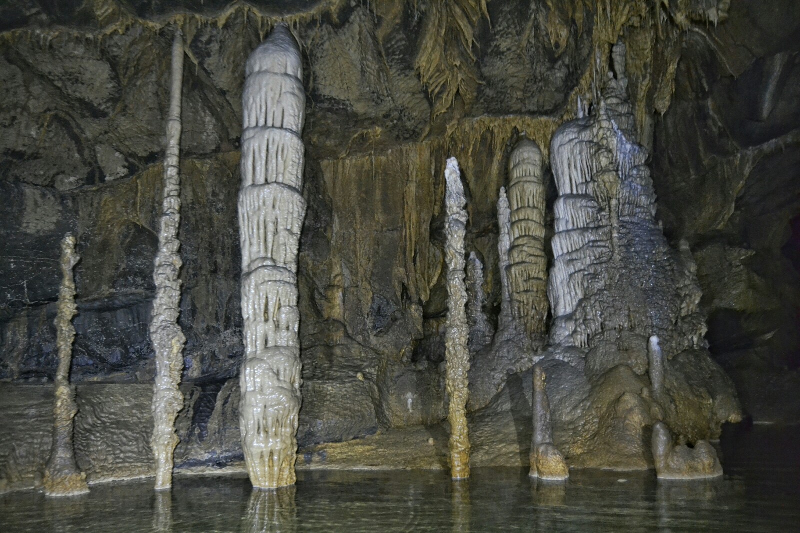 - … y Kalvarija, una enorme gruta con estalactitas, estalagmitas y columnas que destacan por su enorme tamaño (algunas de ellas están incluso sumergidas bajo el agua)