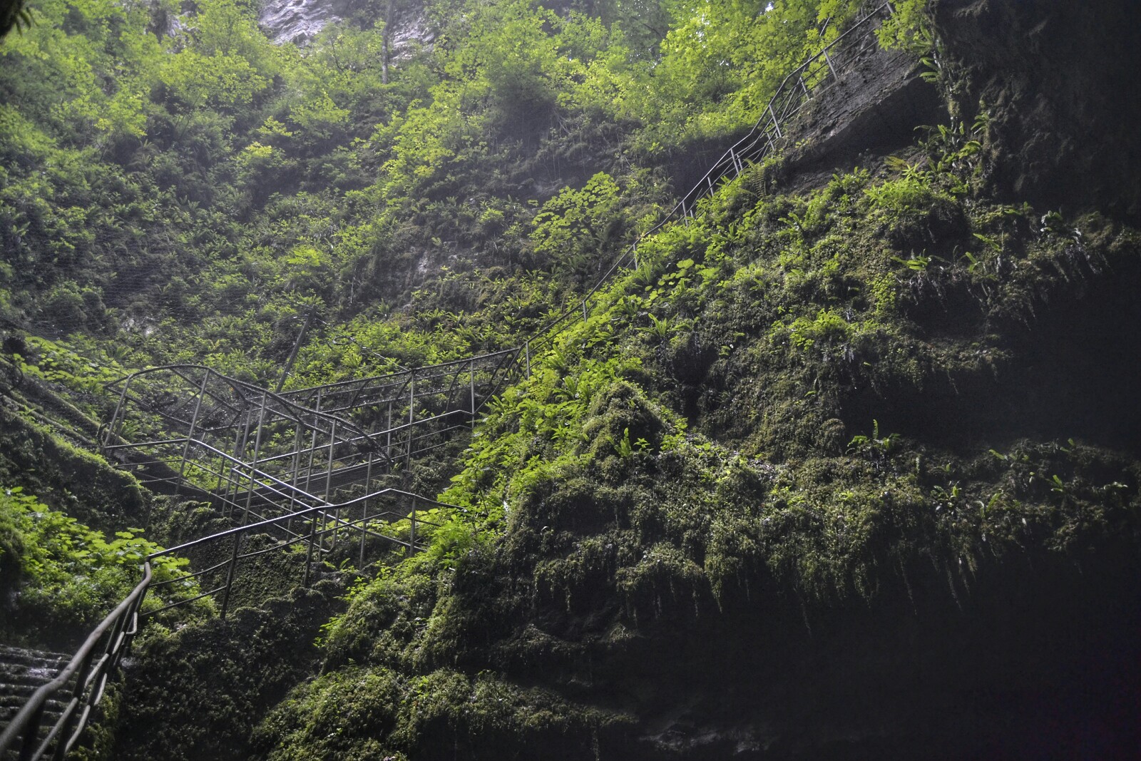 Esta primera parte me recordó mucho al volcán hueco de Algar do Carvao (en la isla Terceira de las Azores). Tanto verde concentrado conduciéndonos al abismo… ¡genial!