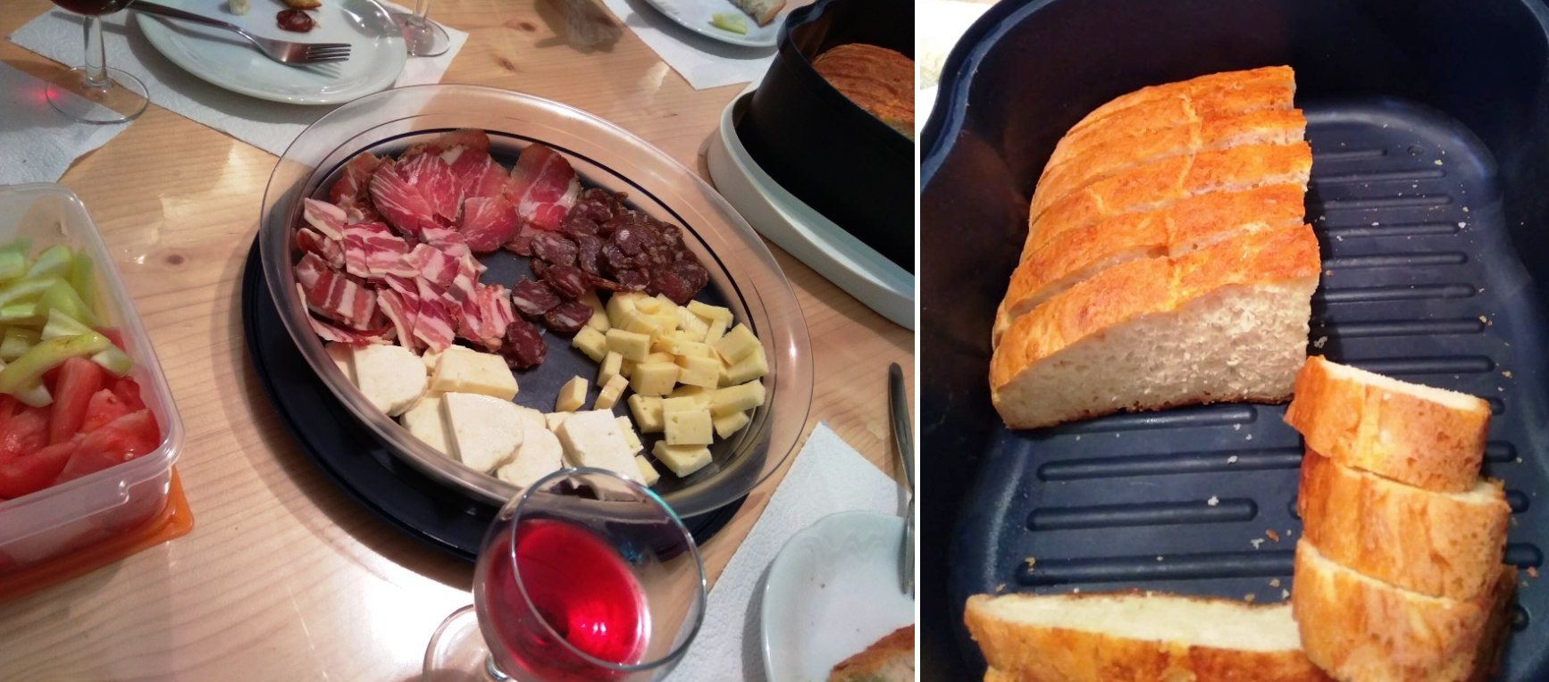 ¡Pasamos una tarde estupenda con la familia de Manca! Además de probar el vino de Marco, nos prepararon un «aperitivo» (suficiente para comer y cenar) de panes caseros, quesos y embutidos de la región.