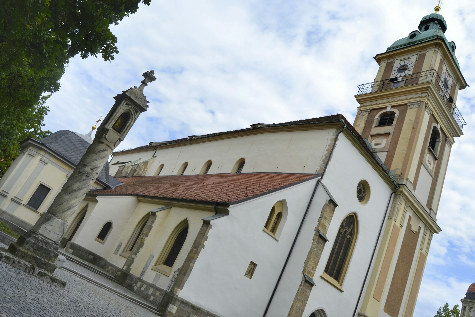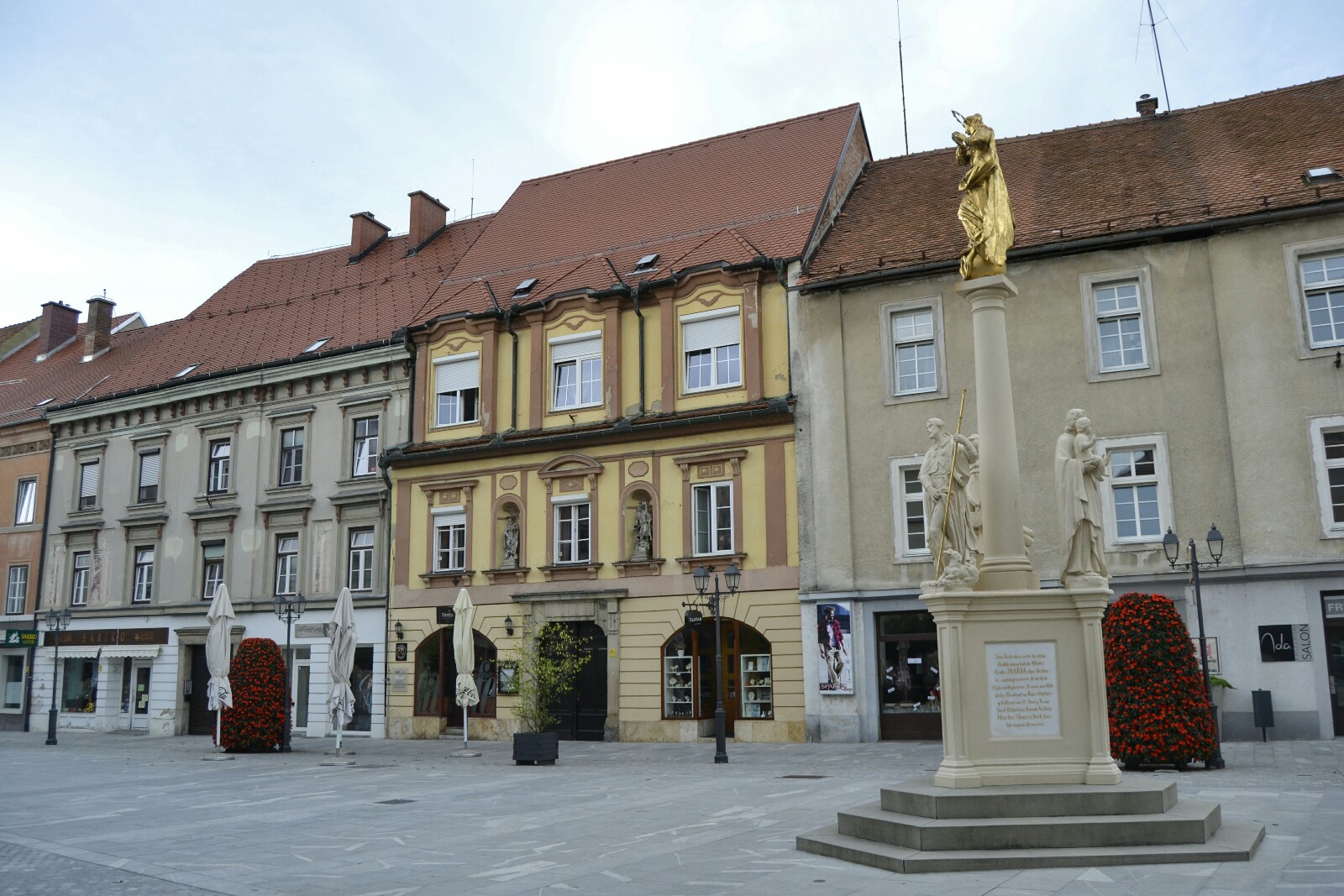 En el centro se encuentra el Monumento de la Plaga, erigido en 1743 como un homenaje a los miles de personas que murieron durante la gran plaga en el siglo XVII.