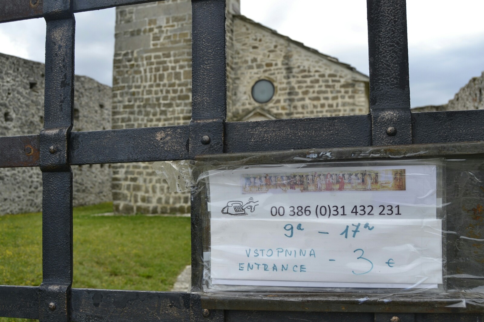 Cuando llegué a la puerta de la iglesia me dio un vuelco el corazón al ver que estaba cerrada, pero realmente es que siempre lo está y hay que llamar al teléfono que pone el cartel para que venga la señora a abrir la puerta.