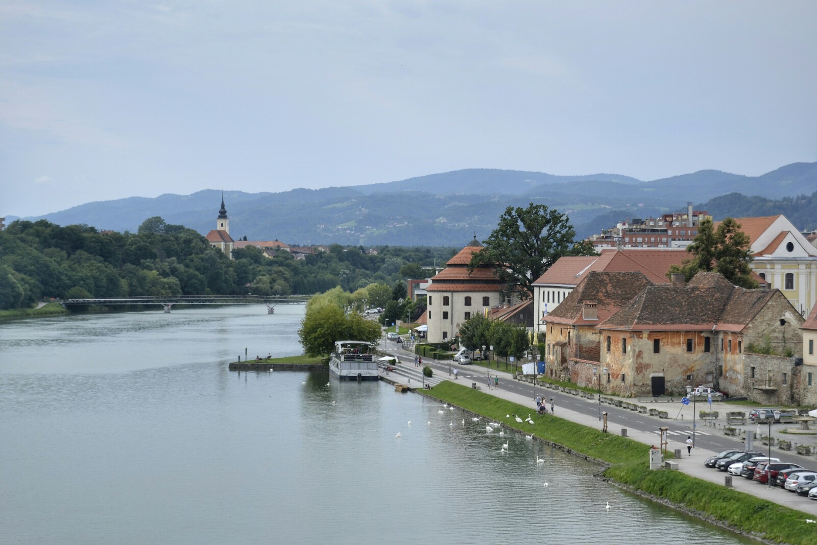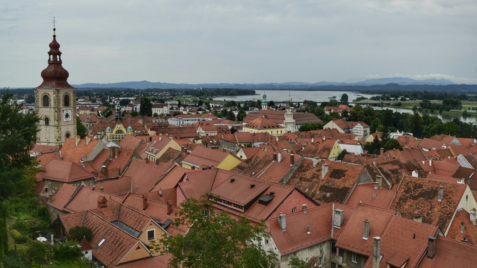 Mi paso por la ciudad se centró en la zona central y cercana al Río Drava. Llegué en coche después de una infructuosa parada en Celje (que se vio truncada por una fuerte tormenta que me obligó a refugiarme media hora bajo un toldo para, finalmente, echar a correr hasta el coche… ¡Menos mal que había llevado ropa de cambio y una toalla!).
