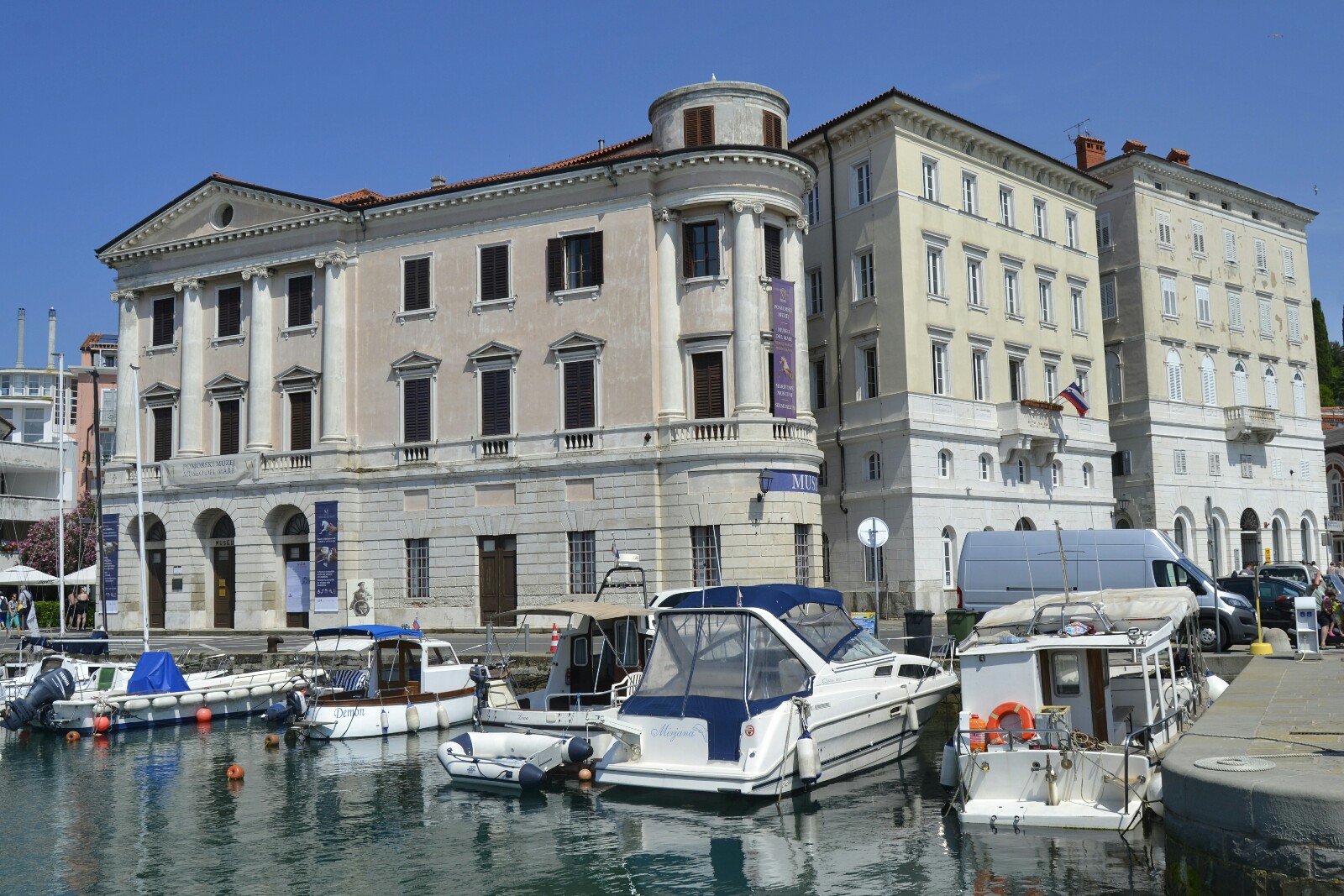 Me dirigí a la estación de autobuses pasando una vez más por la Tartinijev Trg y disfrutando de las vistas del Puerto de Piran, dominadas por el formidable edificio del museo marítimo.