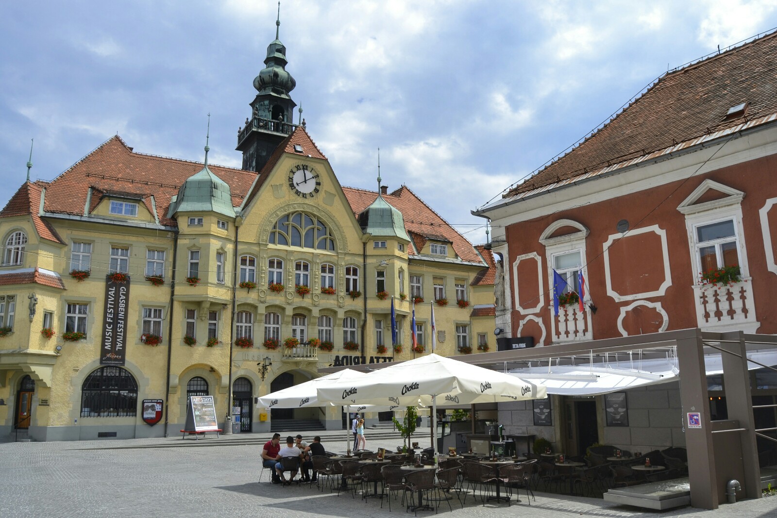Bajando del castillo hay que dirigirse inmediatamente a la Mestni Trg (Plaza de la Ciudad), una pequeña plazoleta rodeada de varios edificios entre los que destaca el ayuntamiento (de estilo nego-Gótico Alemán de principios del siglo XX).
