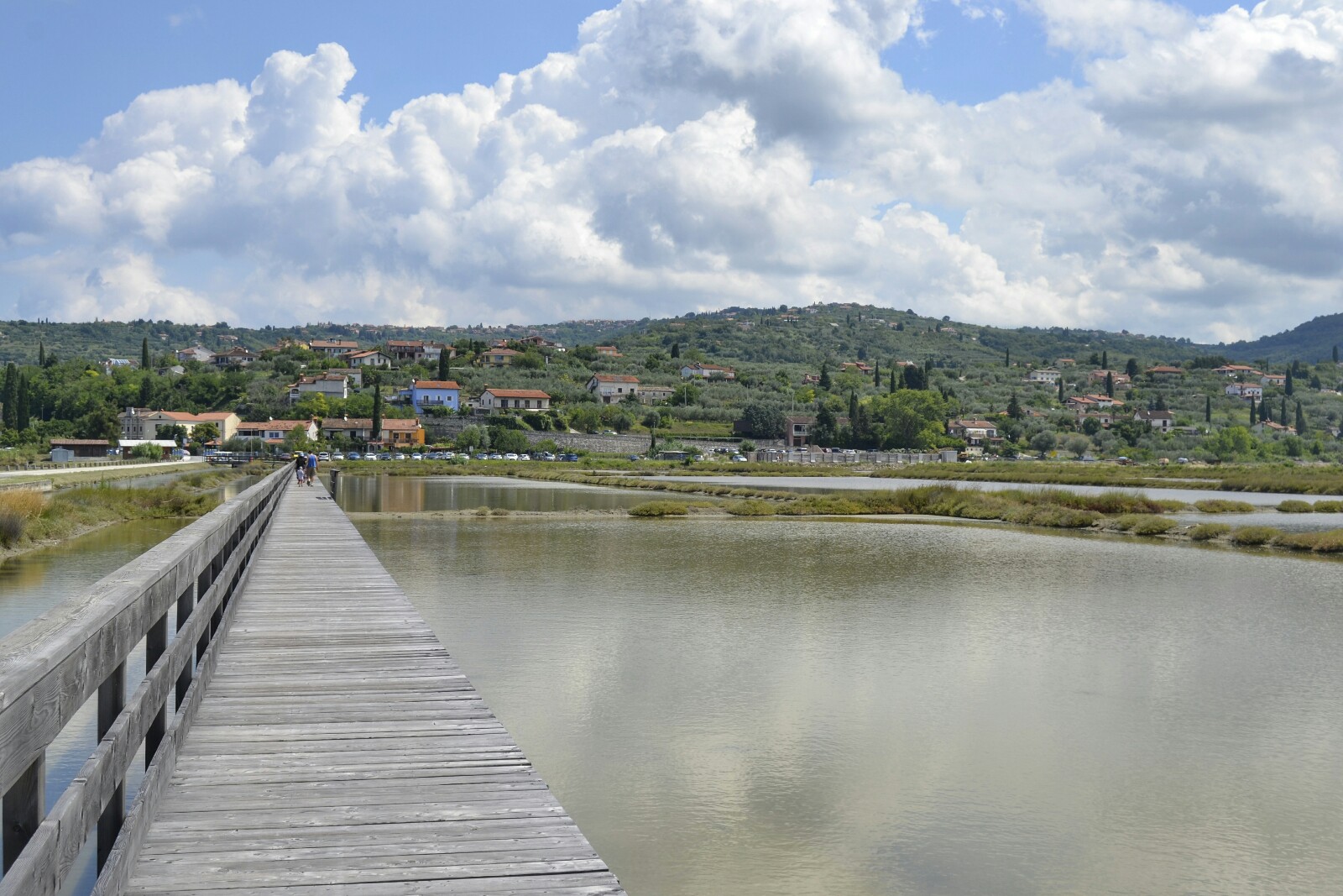 La parte de Lera la hice caminando por una pasarela recta que lleva hasta el centro de interpretación y que pasa junto a un montón de piscinas que se usan para conseguir la sal.