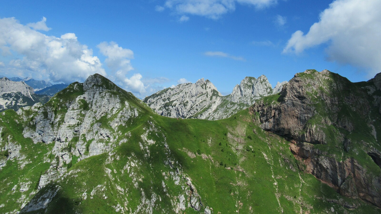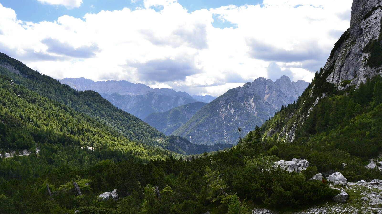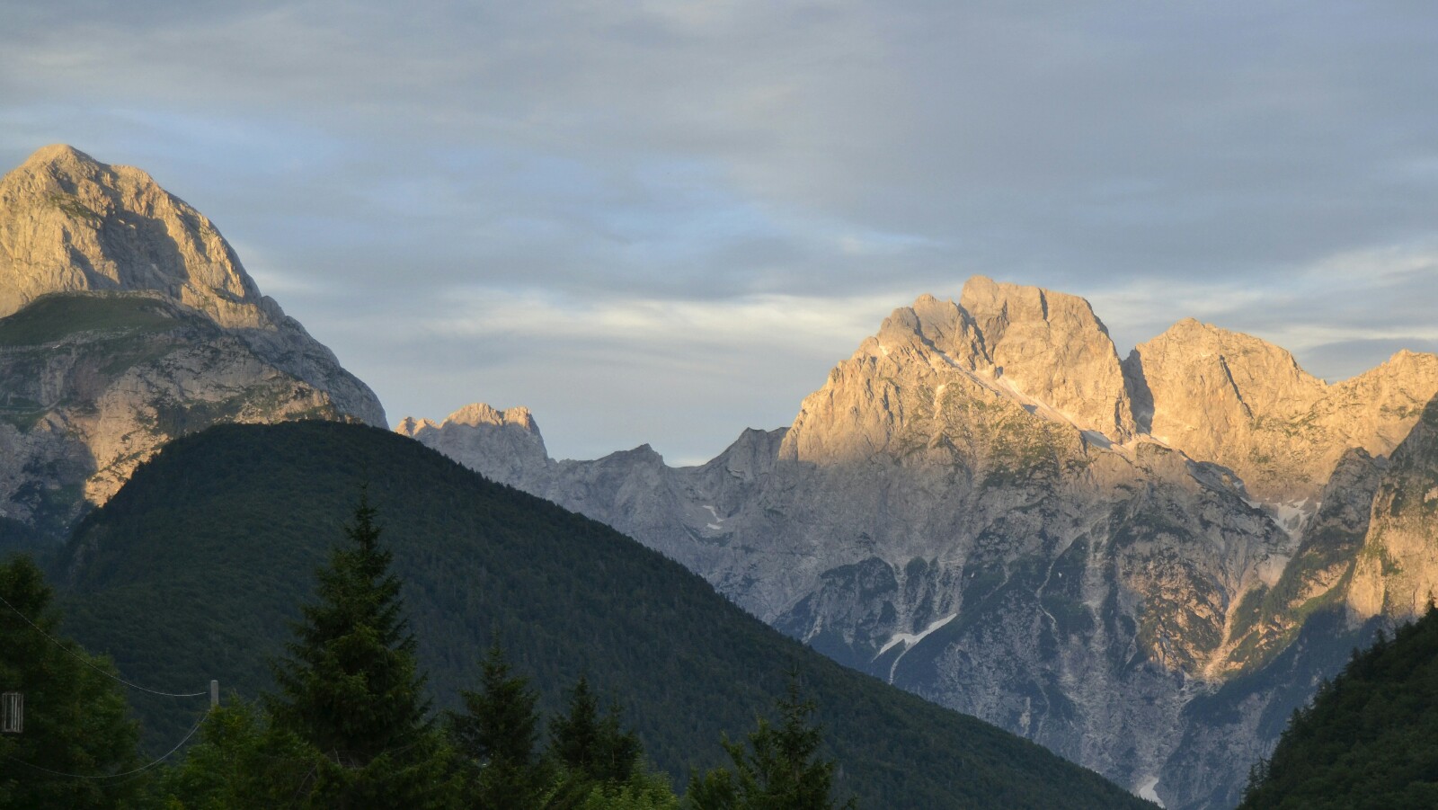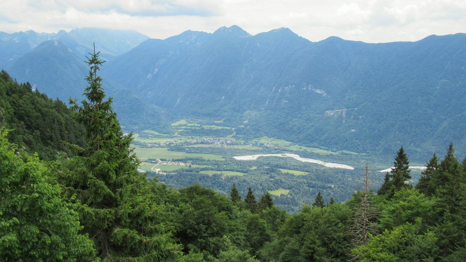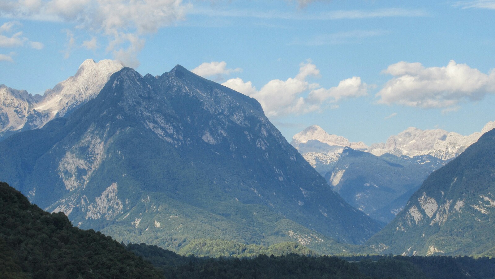 Por un lado, estaba la extraordinaria panorámica de la parte de Eslovenia, bañada en un extenso manto verde con unos imponentes picos rocosos en el horizonte.