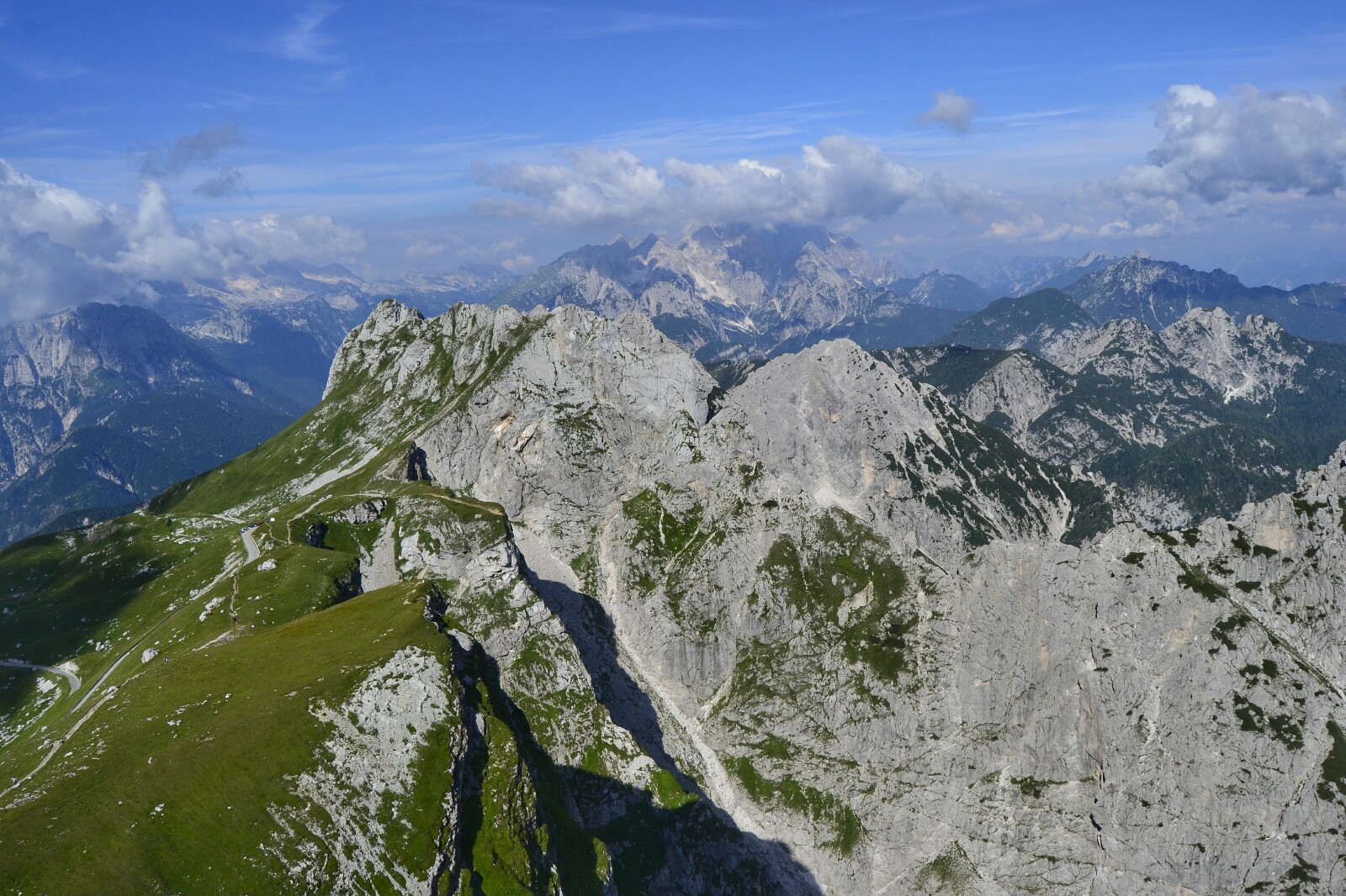 La primera parada la teníamos clara: seguir conduciendo carretera arriba hasta el parking más elevado de todo el país (2072 metros de altitud) y que da acceso a la zona del Mount Mangart, el tercer pico más alto de Eslovenia (2679 metros).