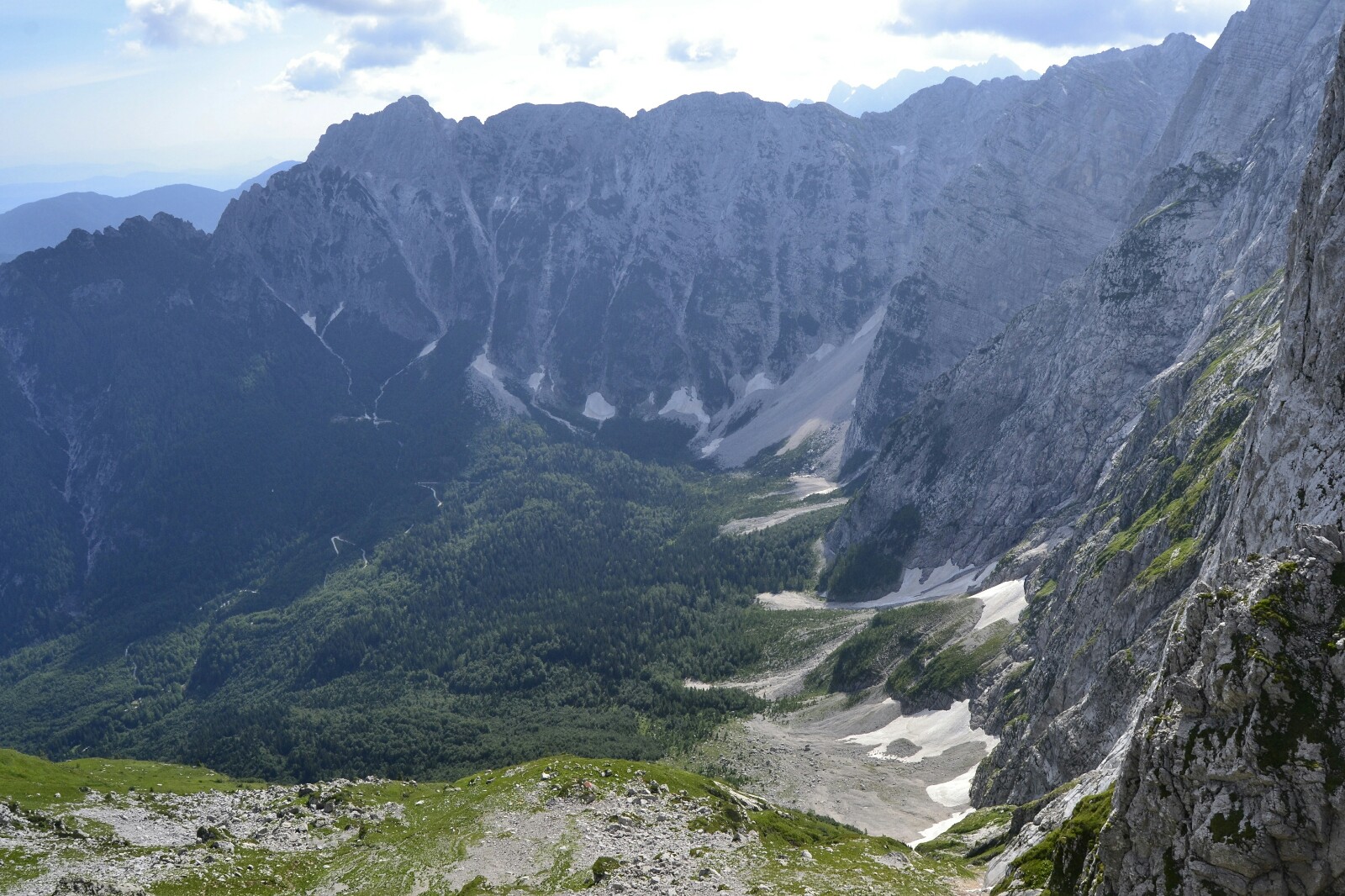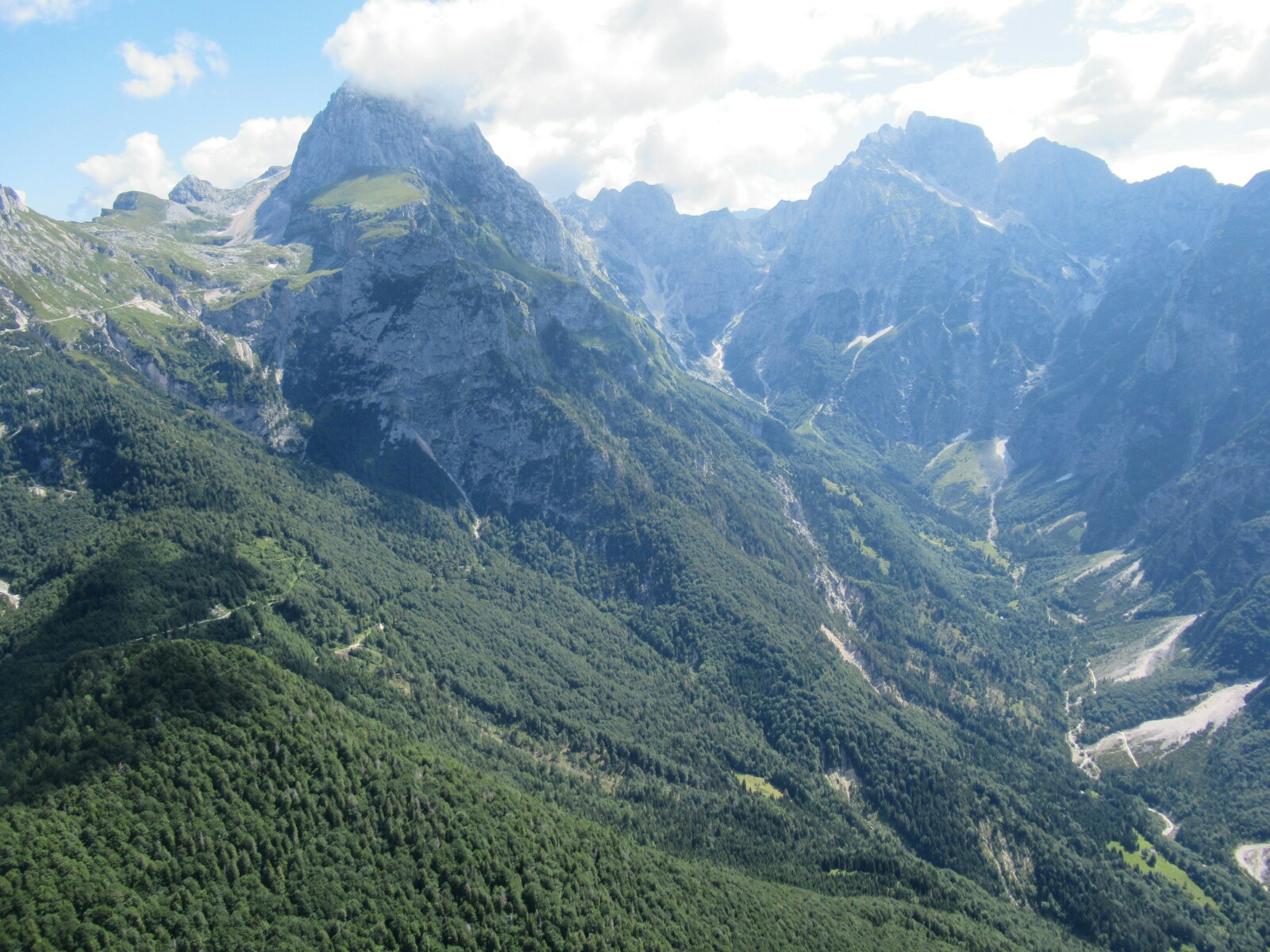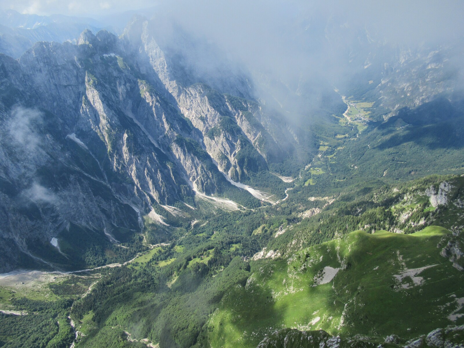 Mirando hacia atrás, se abre ante nuestros ojos la grandeza del Valle Soca y la majestuosidad de algunos de los picos del área del Triglav (al que espero poder ir antes de marcharme de Eslovenia).